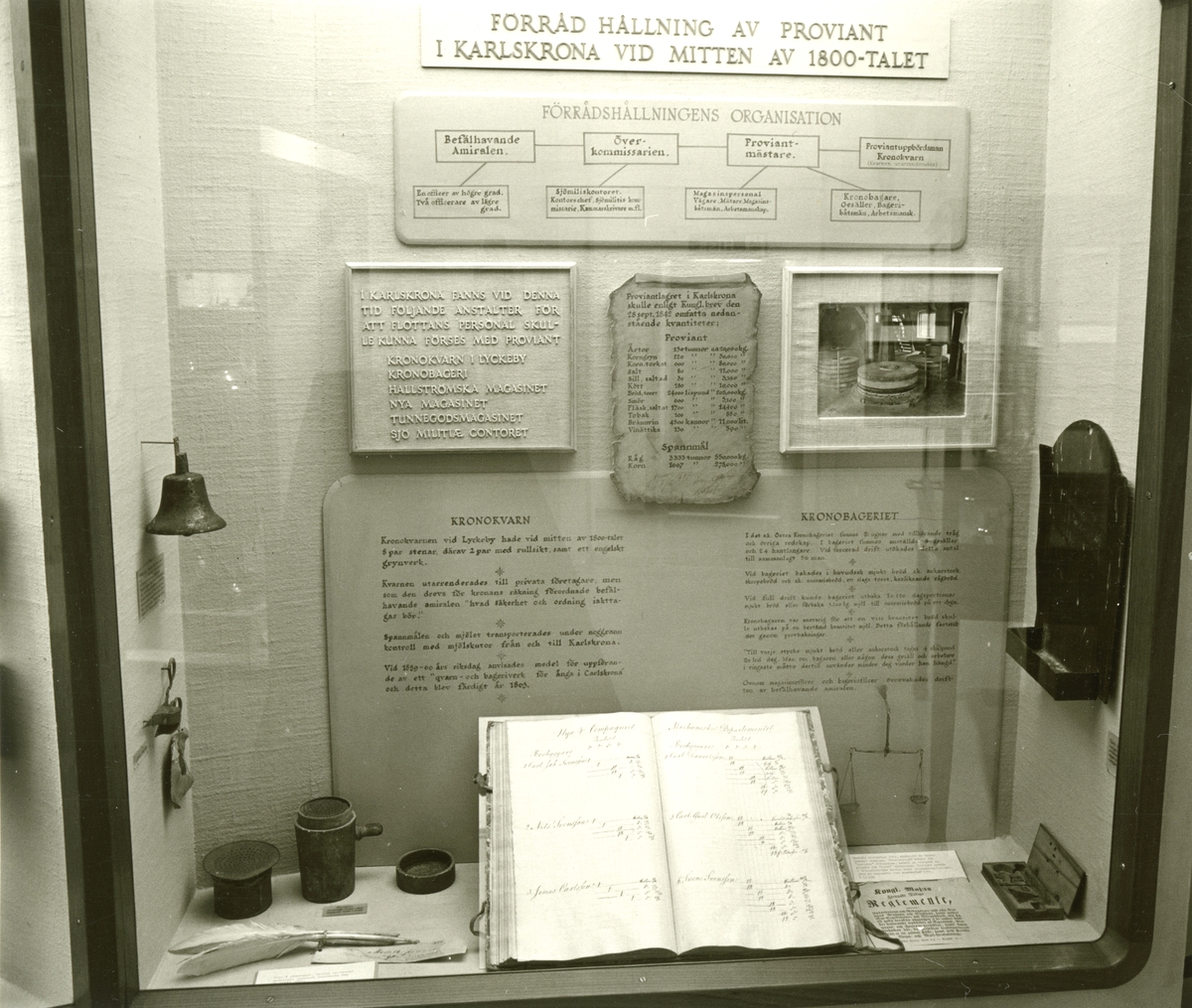 Den permanenta utställningen fotograferad 1987. Del av utställning som visar Förråd hållning av proviant i Karlskrona vid mitten av 1800-talet.