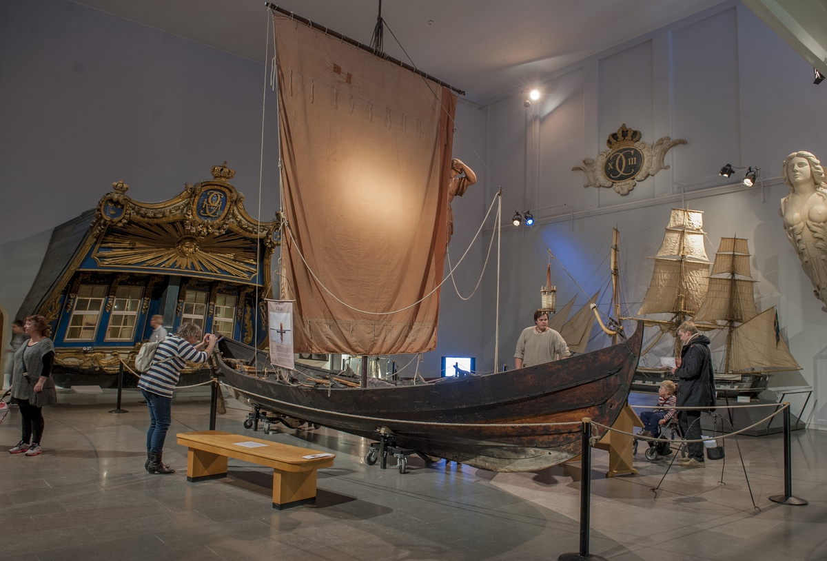 Vikingabåt TÄLJA lyfts in i Minneshallen på Sjöhistoriska inför höstlovet 2013
