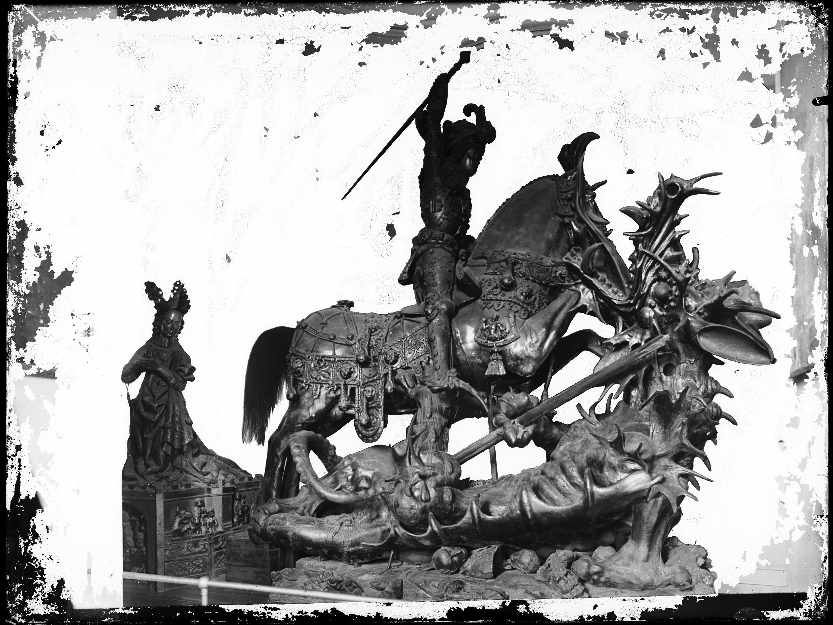Beskrivning: Skulptur, Sankt Göran och draken, av Bernt Notke, invigd 1489.
