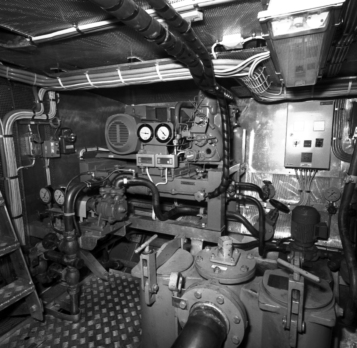 Titel: Liberia (CG 27) Interiör av maskinrum i Liberia (CG 27)