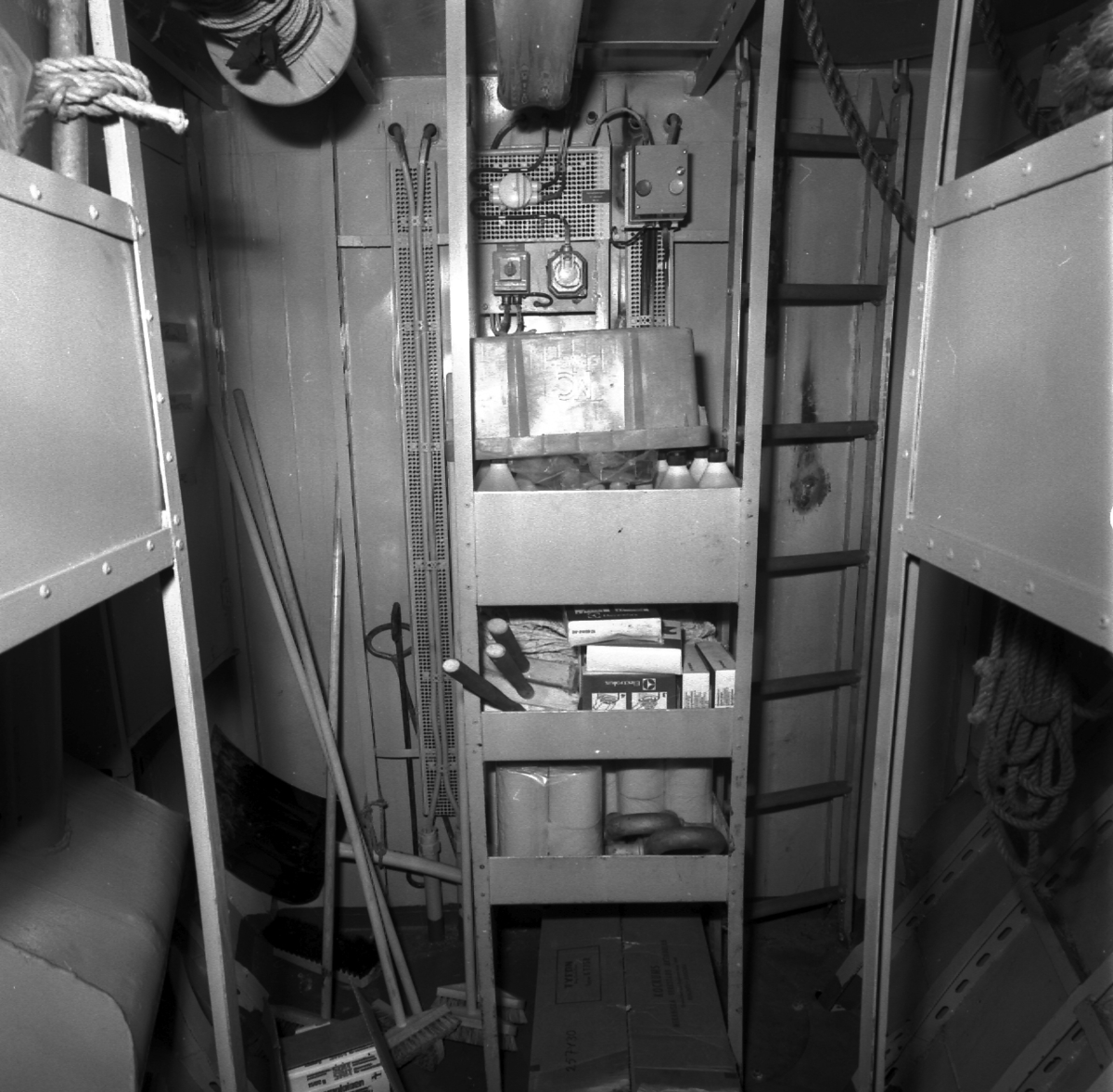 Titel: Piteå Torpedbåten Piteå, interiör av förrådsutrustning