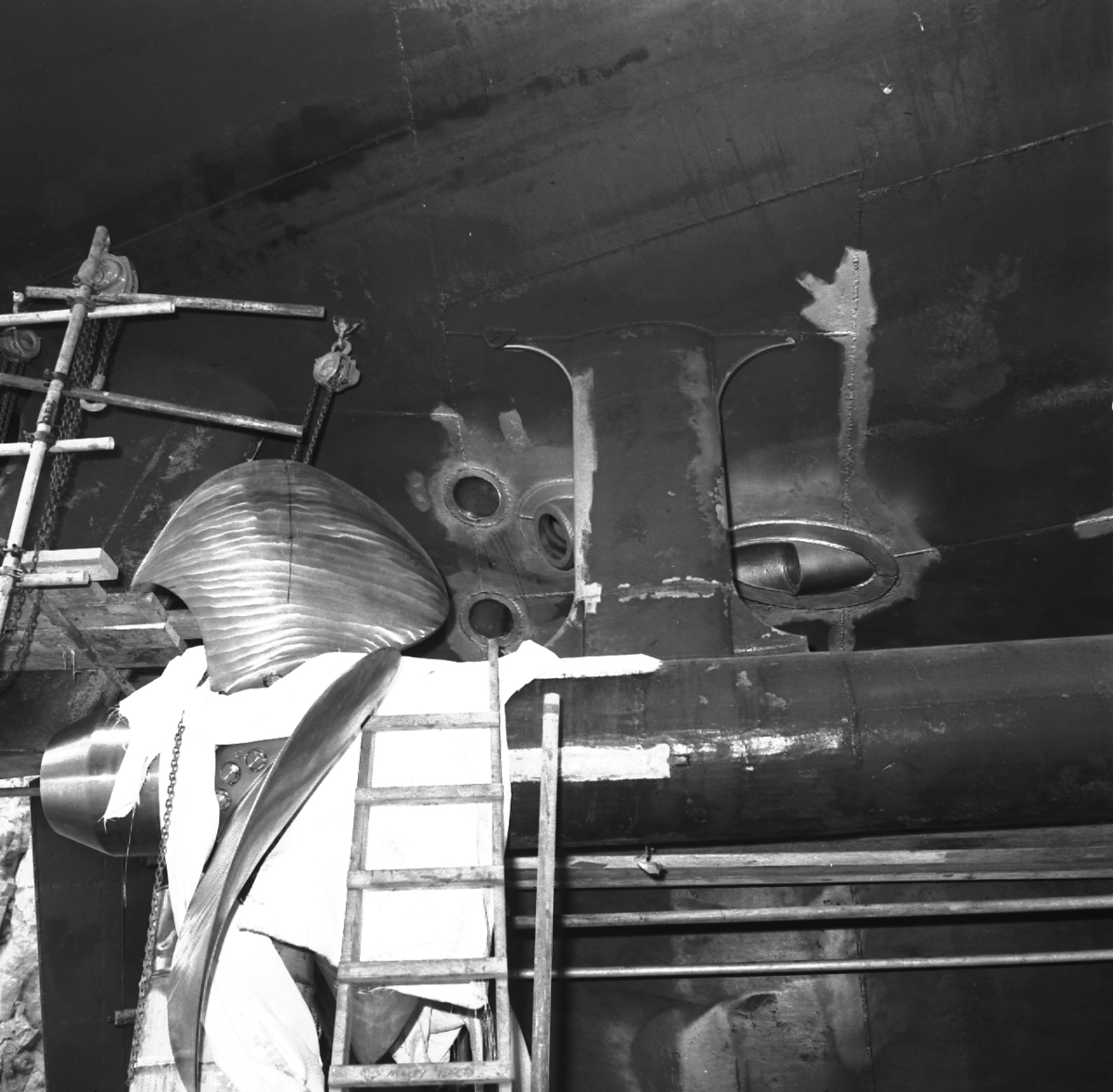 Luckor i bottnen vid propellrarna på minfartyget Carlskrona