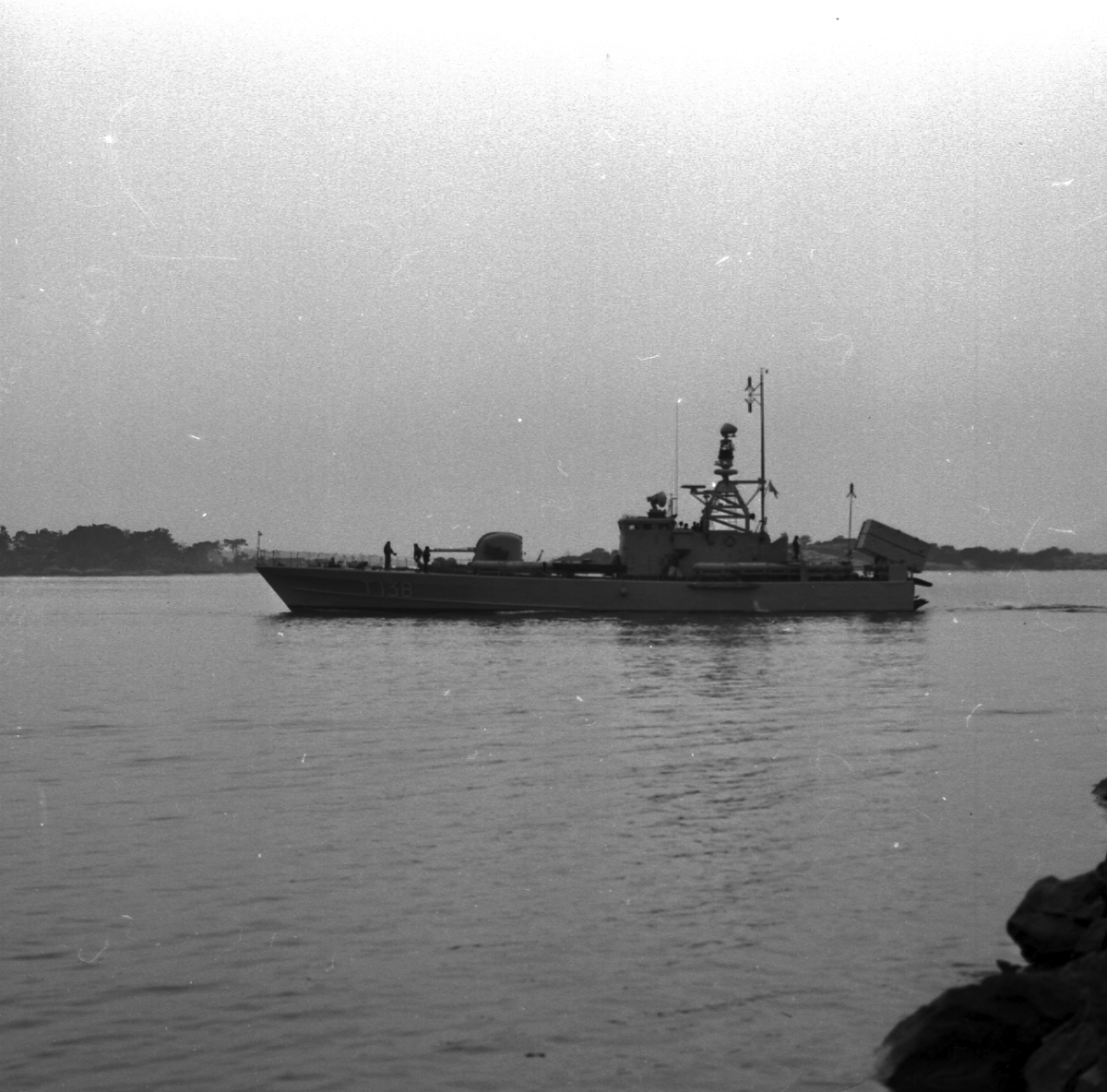 Första provtursdagen med nya raketställ, torpebåten Piteå