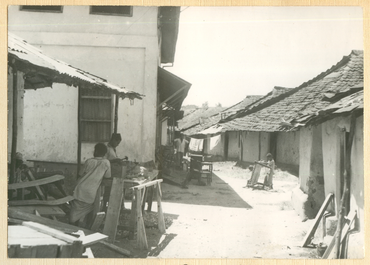 Bilden visar gatuthantverkare i en by på Sao Vincente.