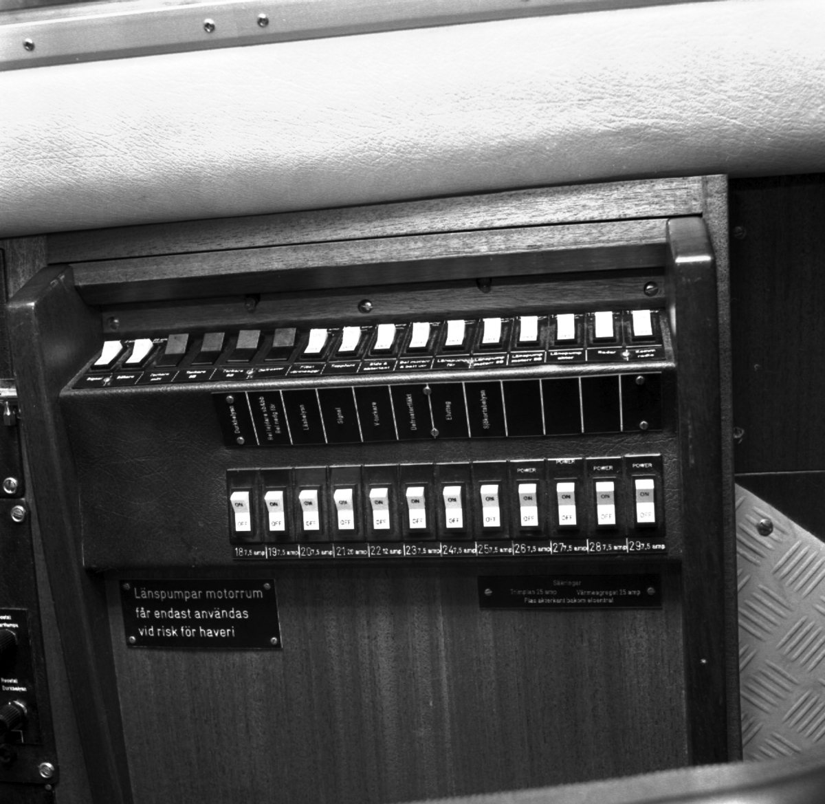 Manöverpanel på minfartyget Carlskronas motorbåt\\\\anm: ingår i en serie om 7 neg varav det första V 91104 scannas/gp