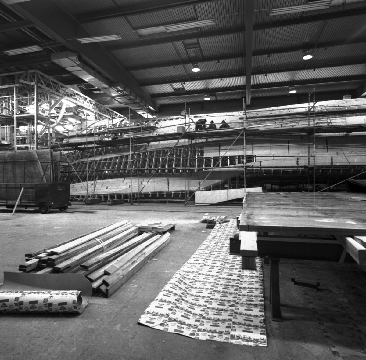 Arbetsställningar kring M 80 i plastverkstaden. Båt nr 2\\\\anm. neg ingår i en serie om 11 st varav endast det första\\V 91712 scannats/gp