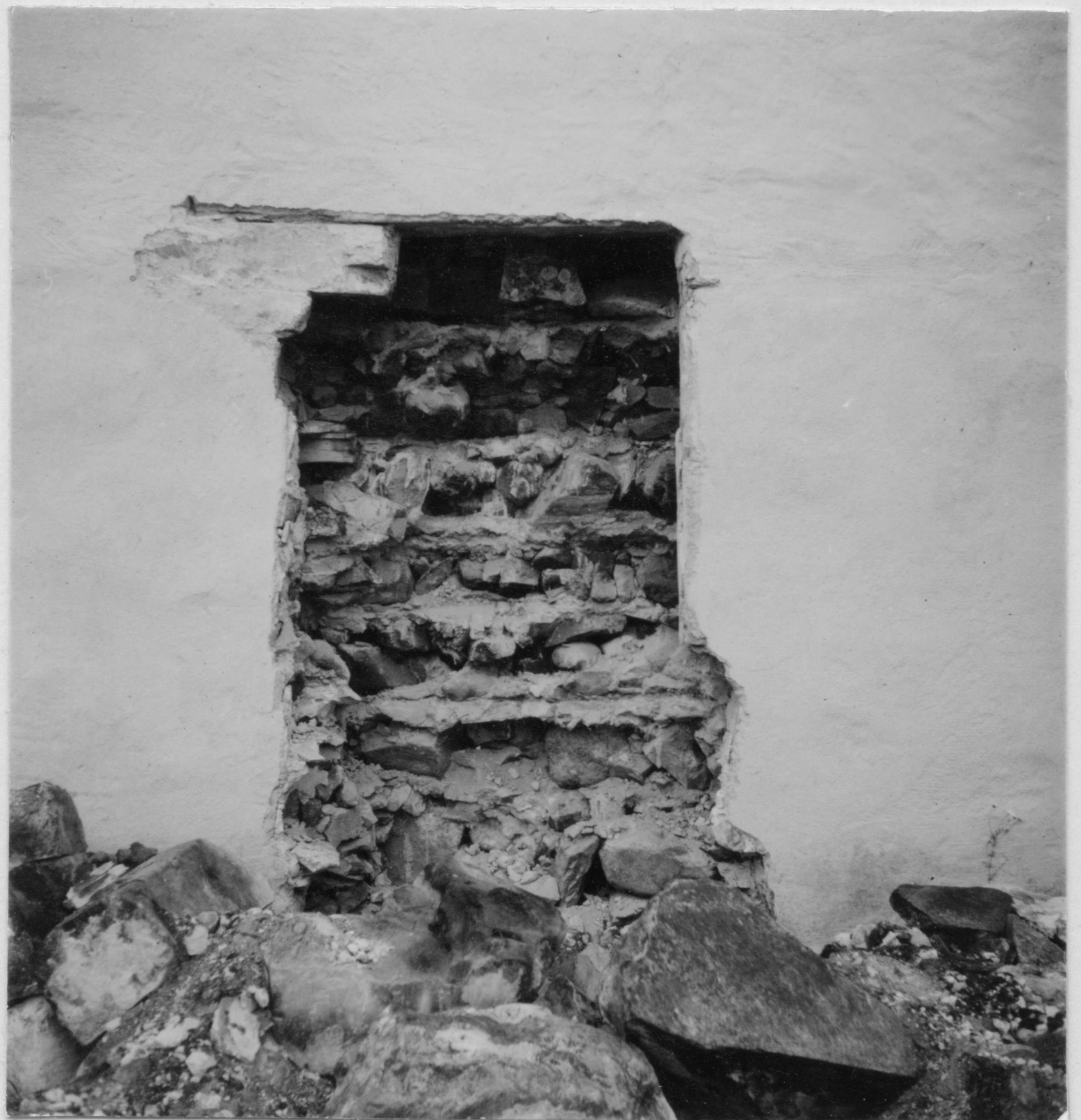 Beskrivning: Norra långhusdörren under pågående arbete.