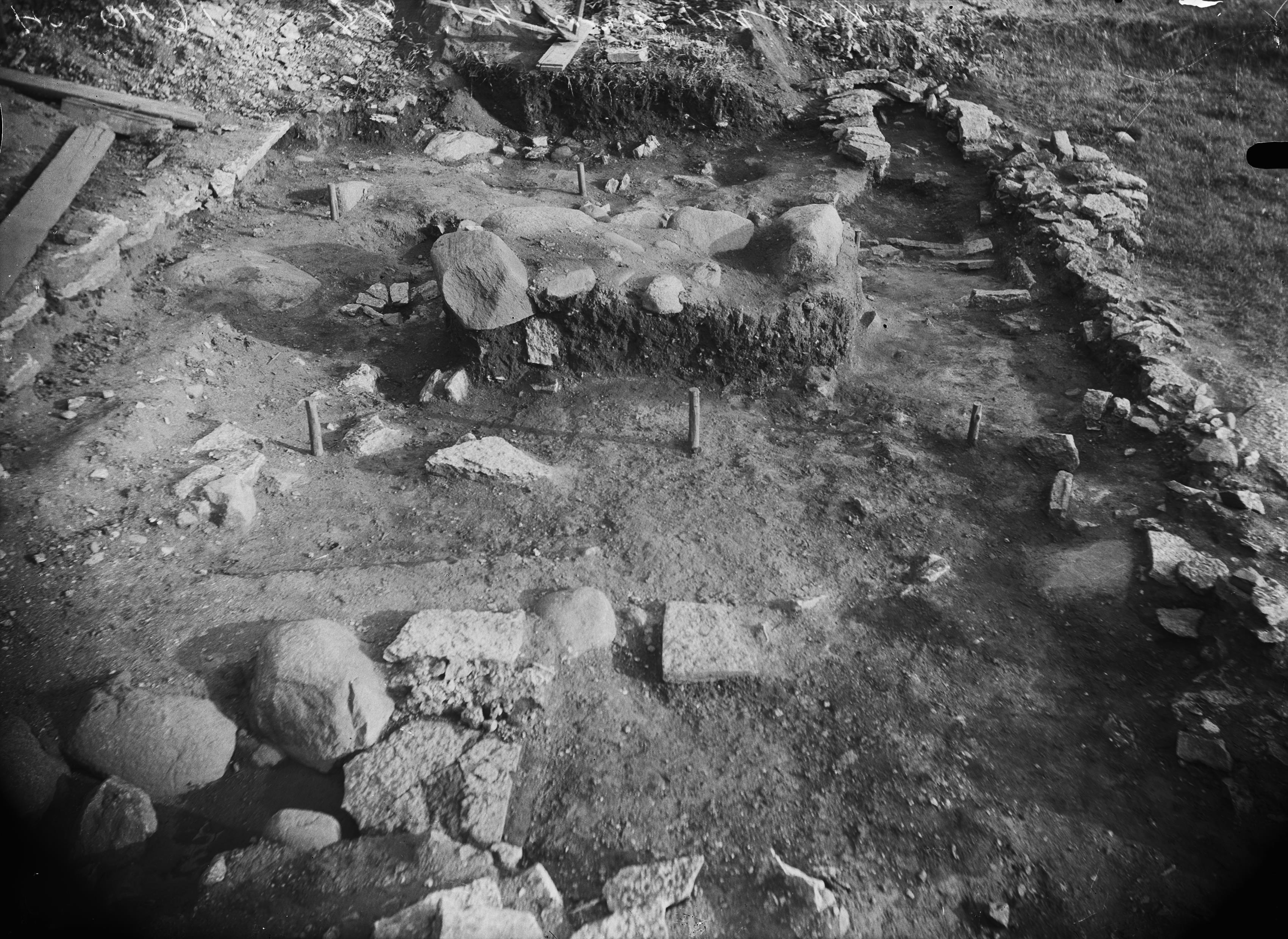Från undersökningen söder om abbotshuset. Söder om husets västra del. I mitten rester av en eldhärd. Från norr.