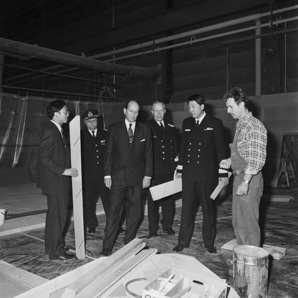 Varvschefen talar med den singaporianske marinchefen och visar honom Örlogsvarvet.