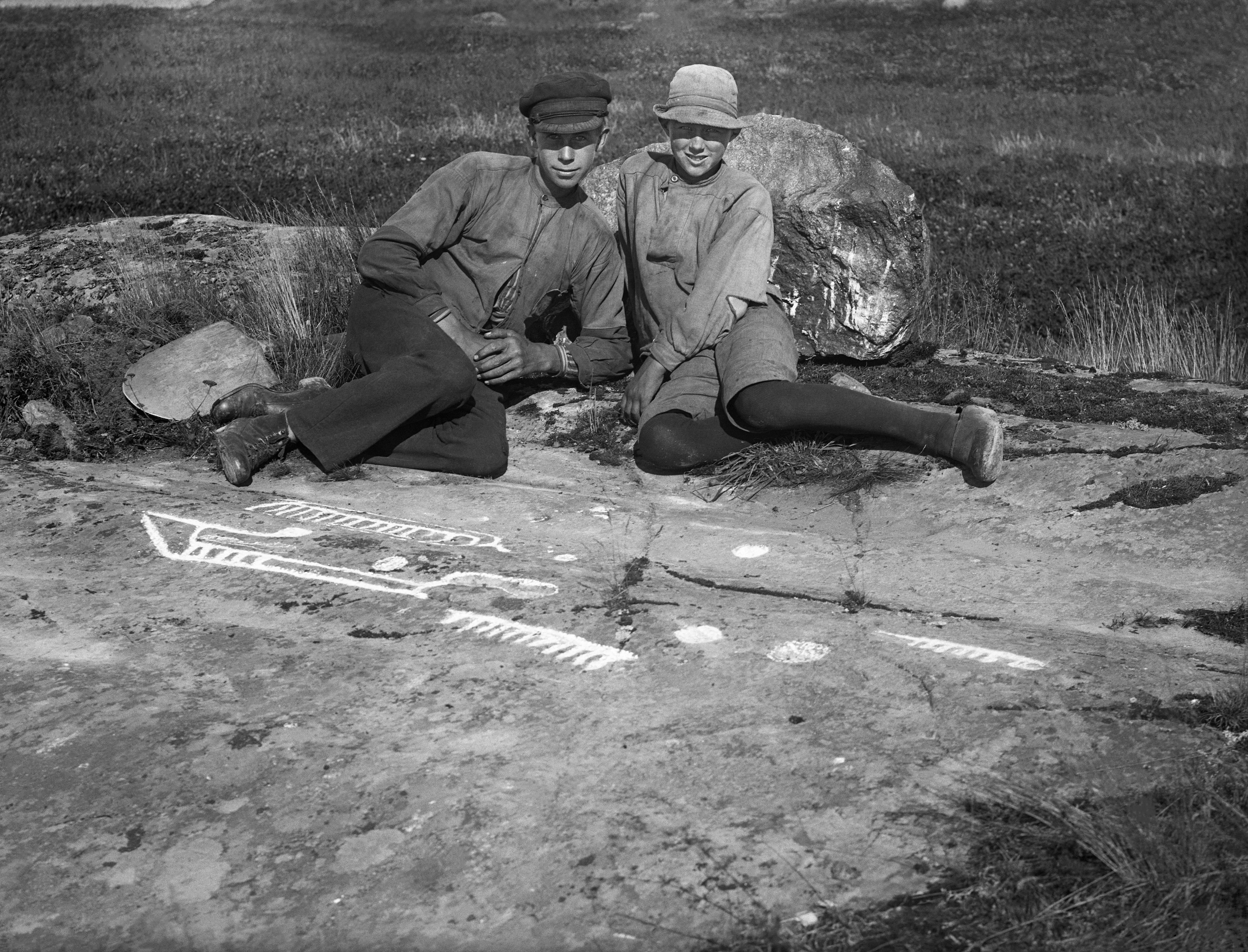 RAÄ-nummer Borg 59:1. Pojkar vid hällristning i Stora Herrebro, tidigare Borg socken.