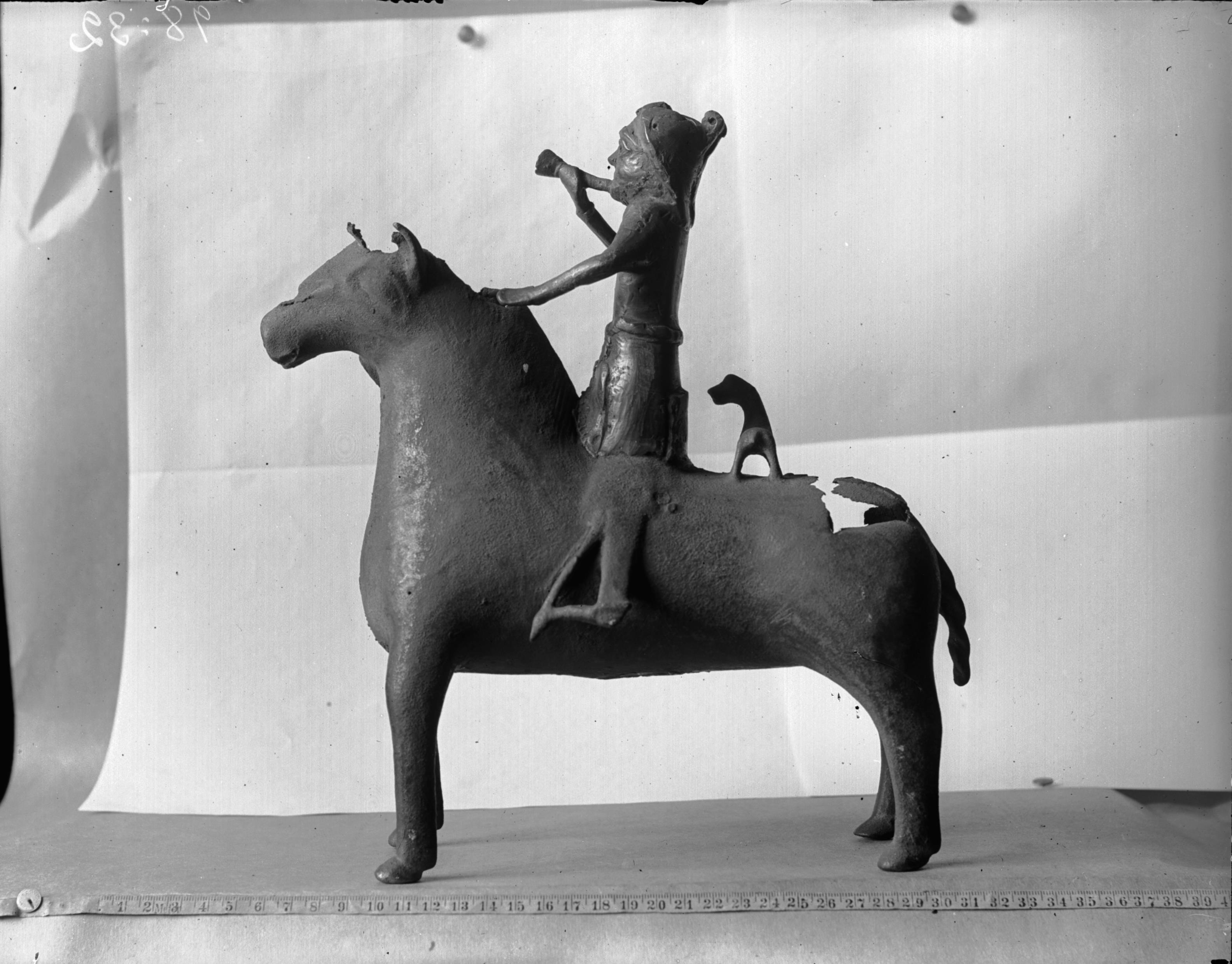 Ryttare till häst, funnen under plöjning på en åker i Västraby, Högseröd socken.
