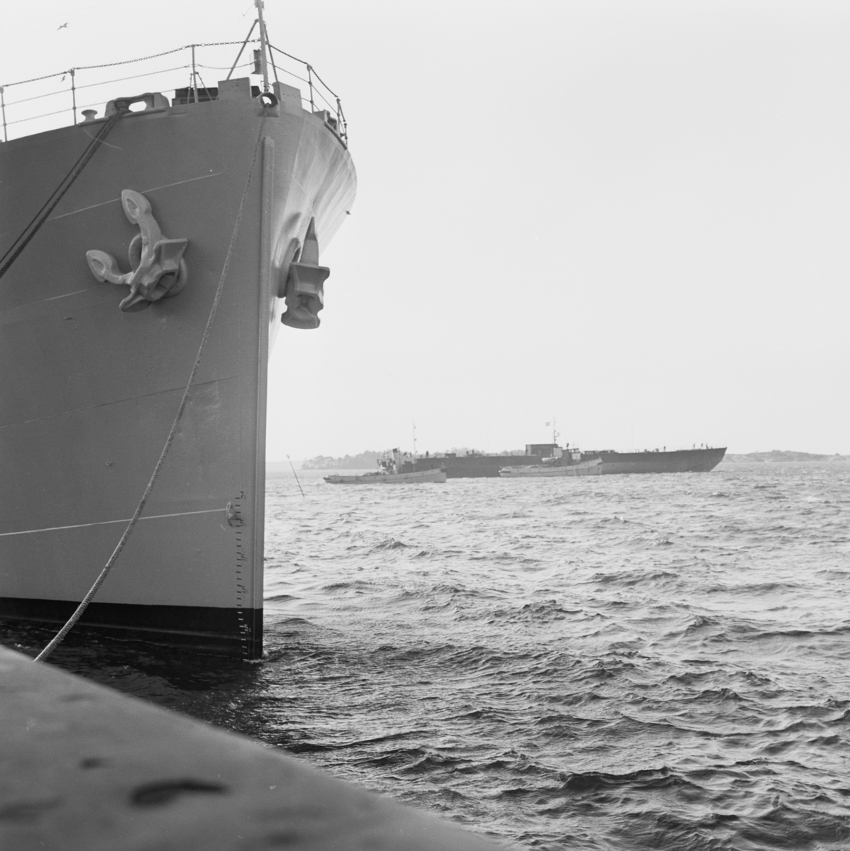 Titel: Bilden visar skrovet av minfartyget Älvsborg efter sjösättningen vid Karlskronavarvet.