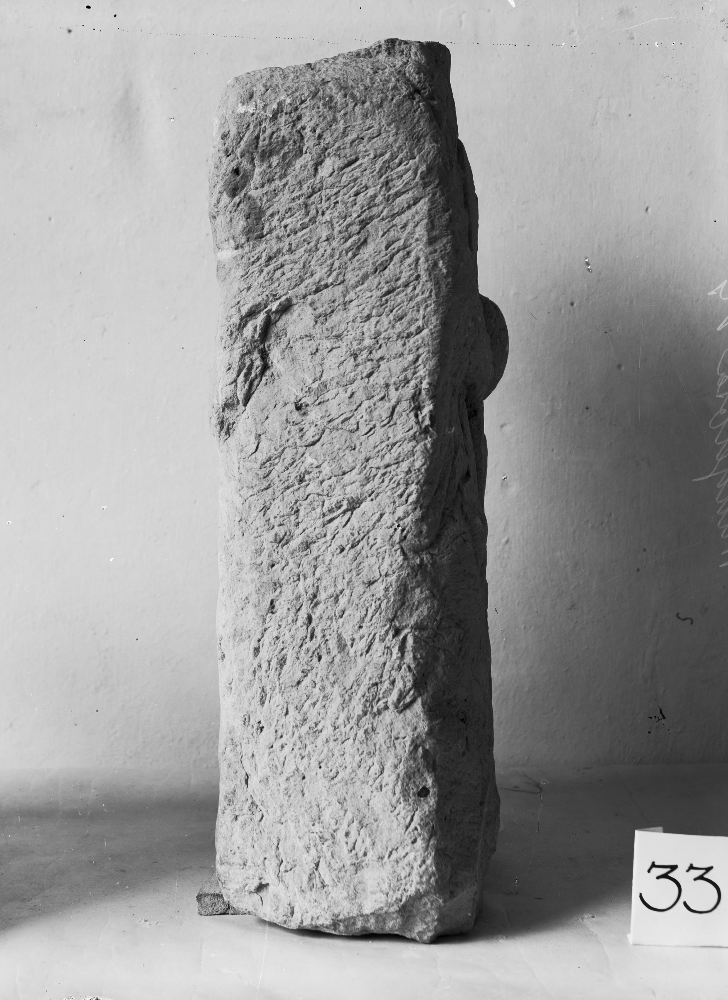 Skulptur, sten, föreställande S:t Olof, sedd från sidan.