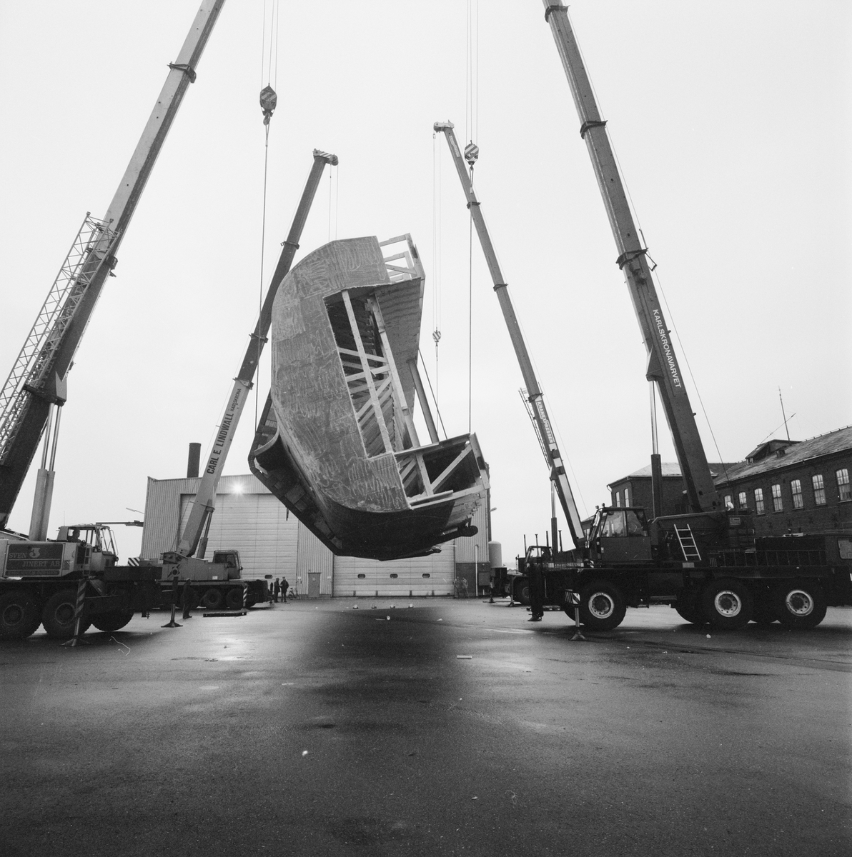 Titel: Vändning av båt nr 2 YSB plastverkst.