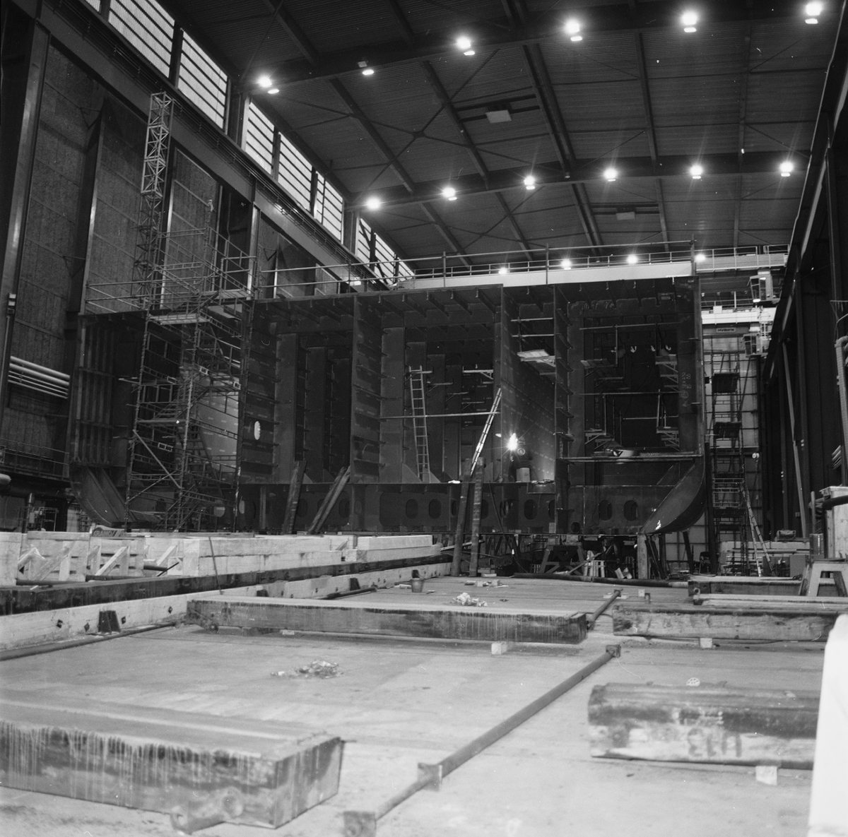 Titel: Ro/ro fartyget på bädden i skrovhallen.