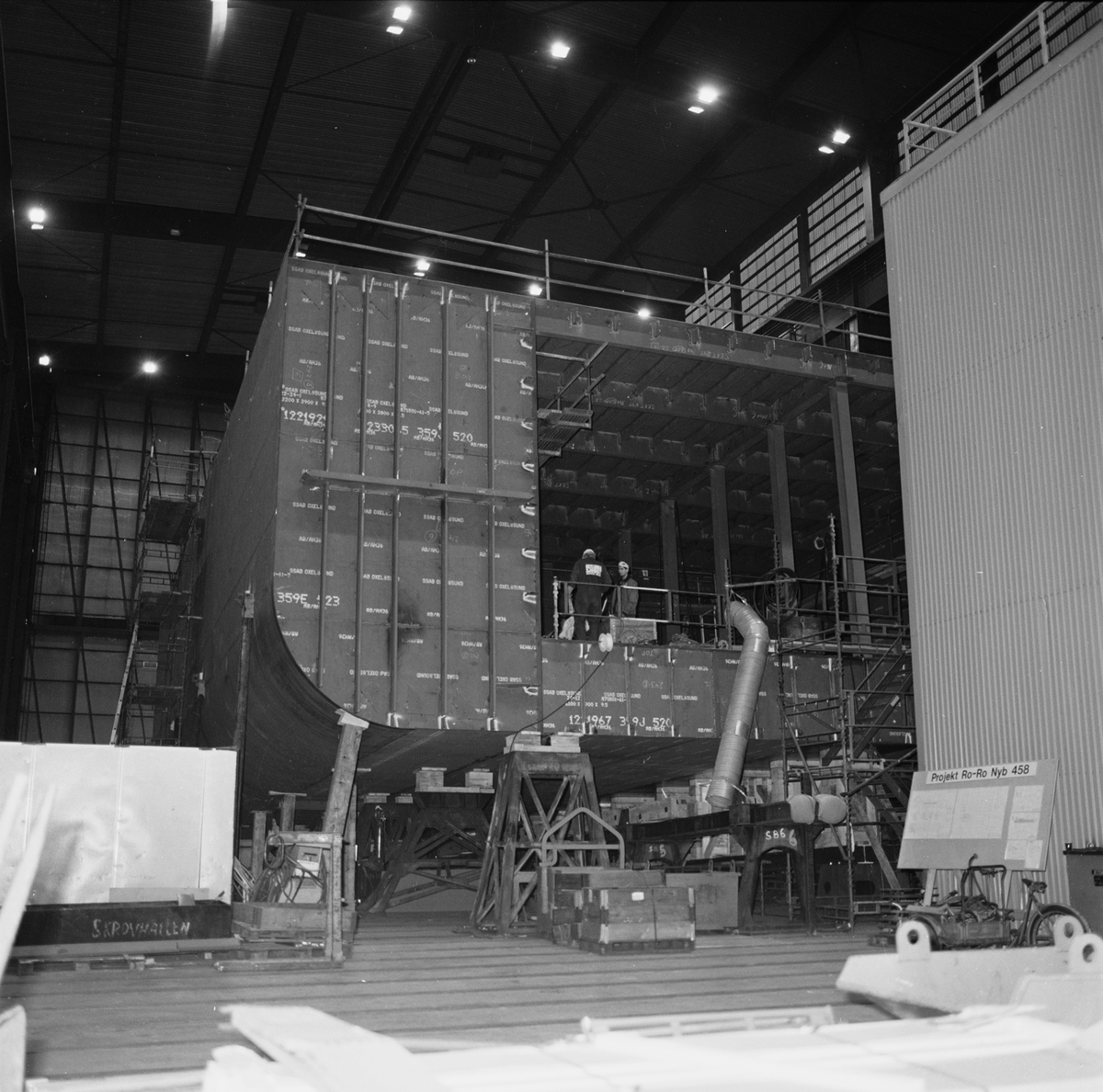 Ro/ro fartyget på bädden i skrovhallen.