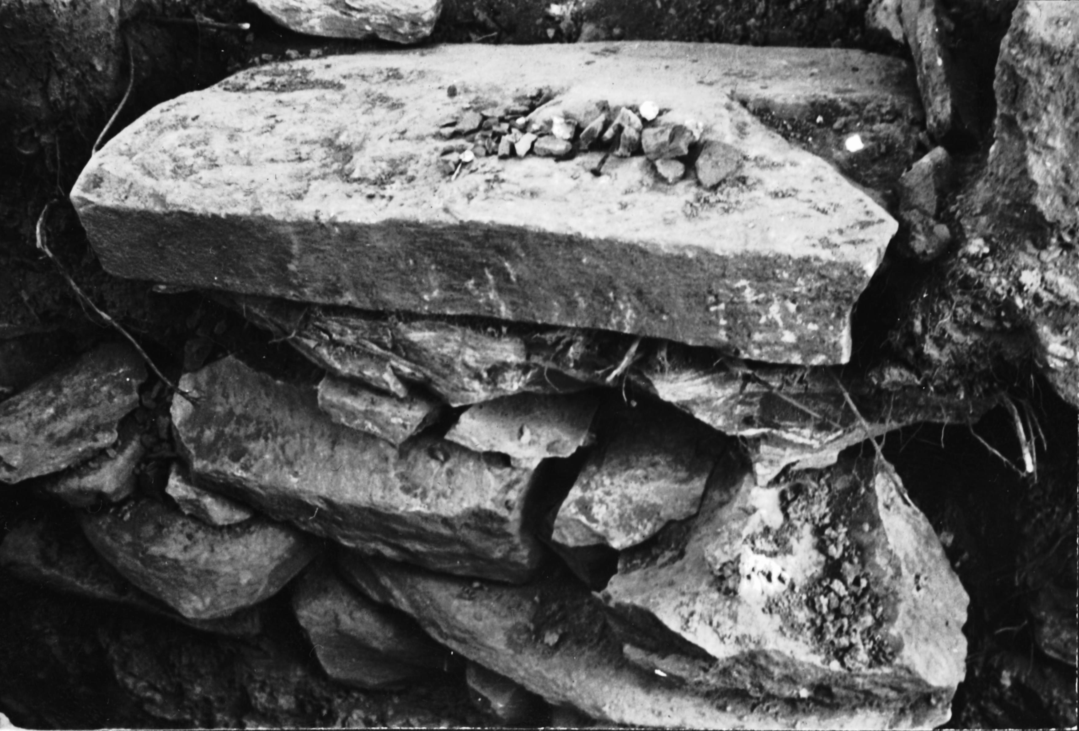 Möjlig grund till en stiglucka norr om nuvarande södra grinden till kyrkogården.