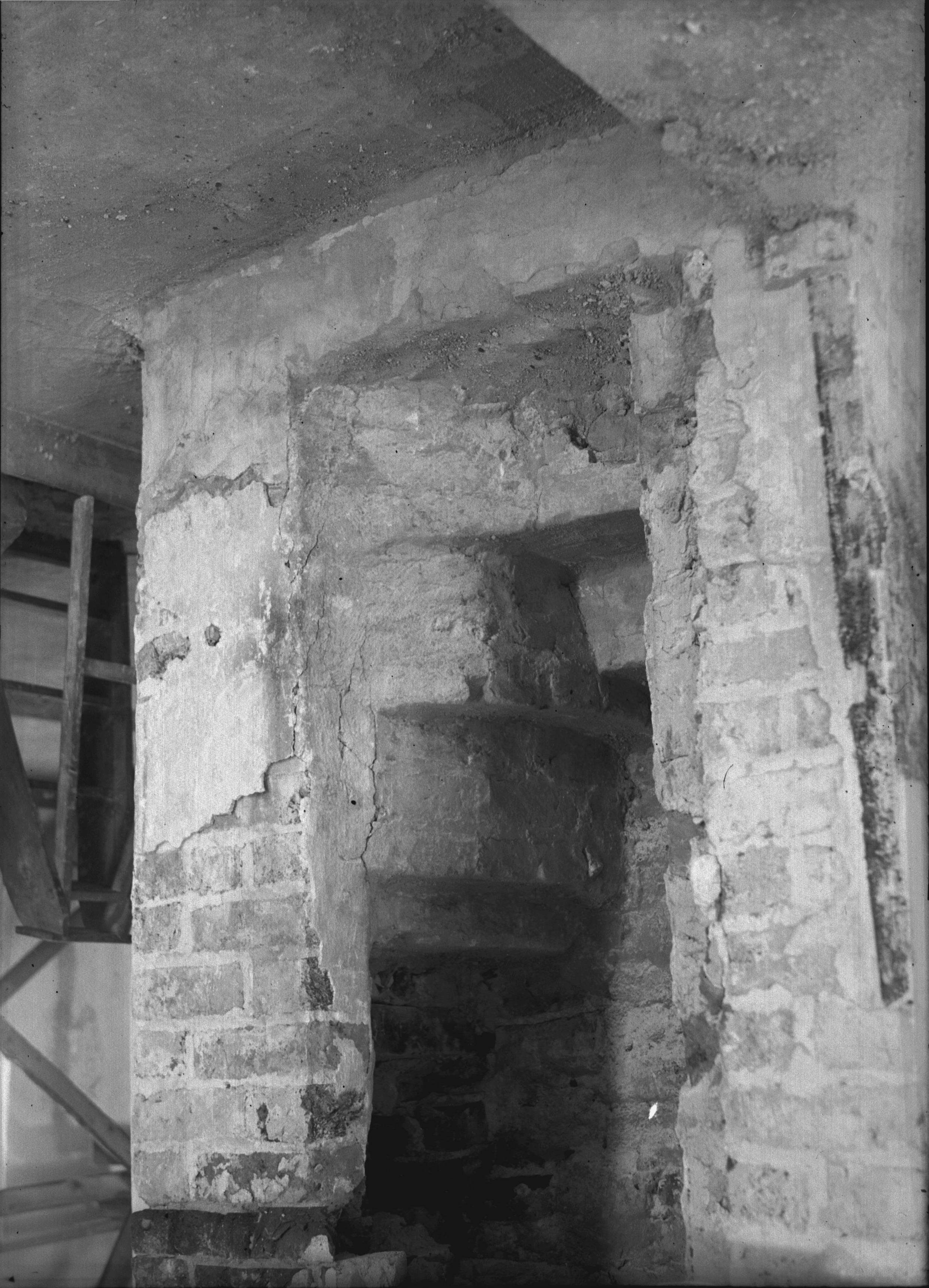 Ingången och trappan från pelarens östra sida.