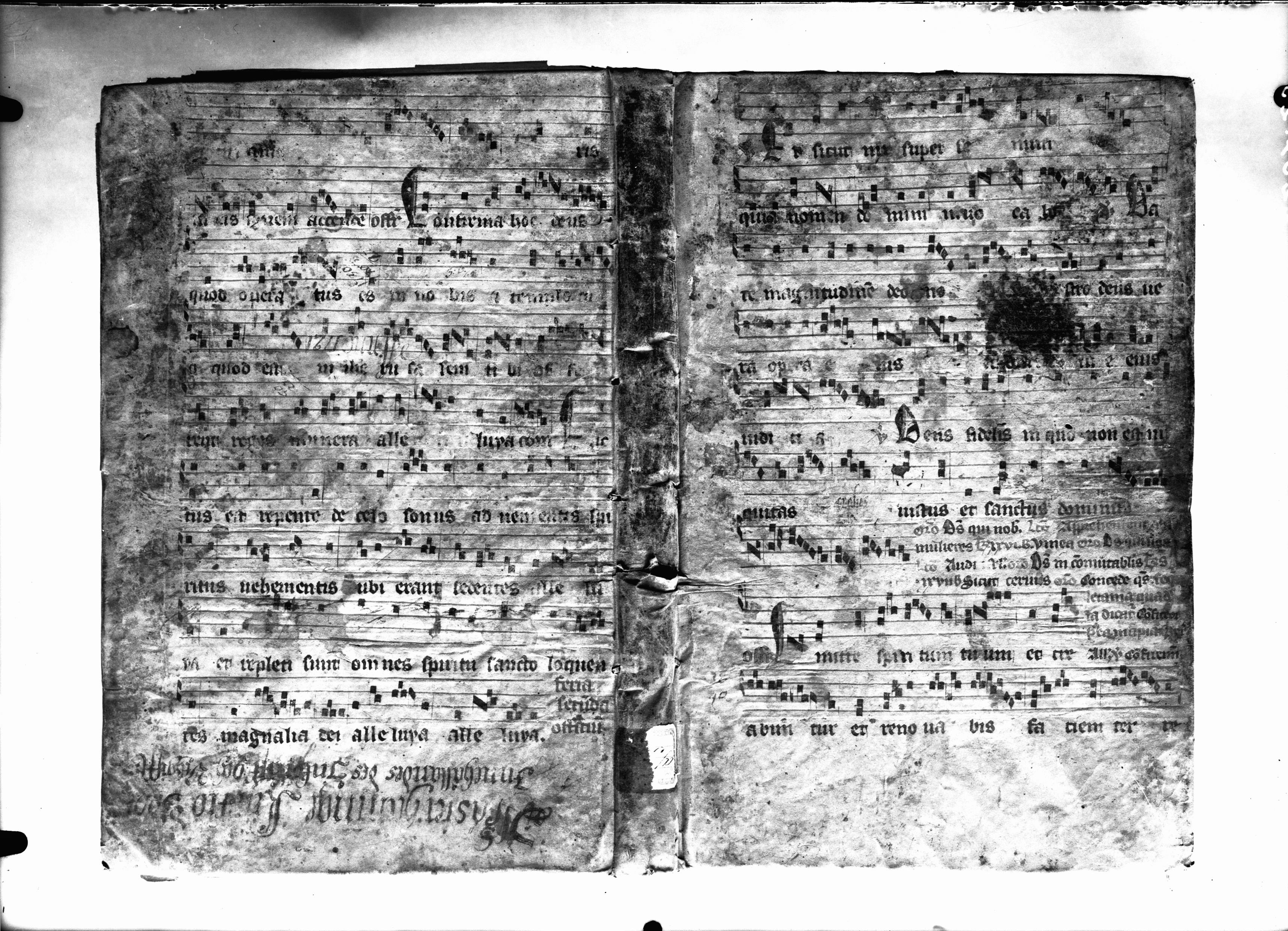 Bok, text på latin med noter, foto efter original i Uppsala landsarkiv.