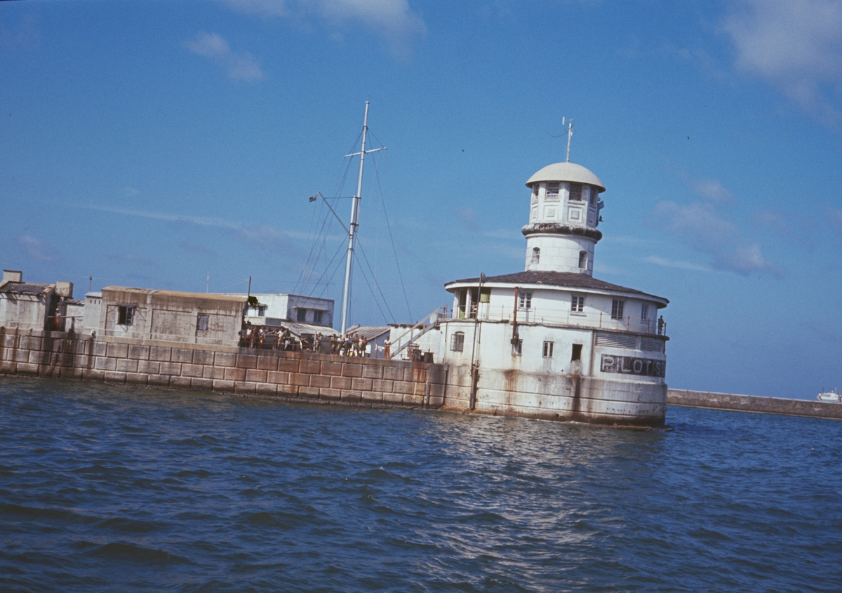 Bilden visar en lotsstation i hamnen från Colombo.