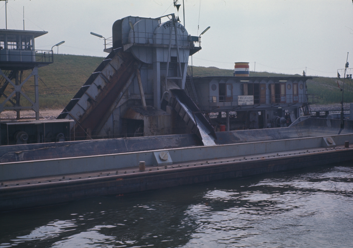 Bilden visar en mudderverk med namn "Friesland" under arbete i Kielkanalen.