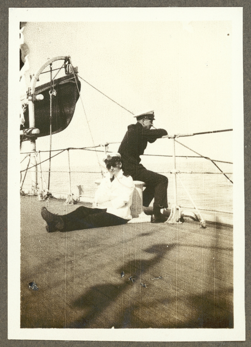 Bilden visar två befäl som ta en rast ombord på Fylgia.