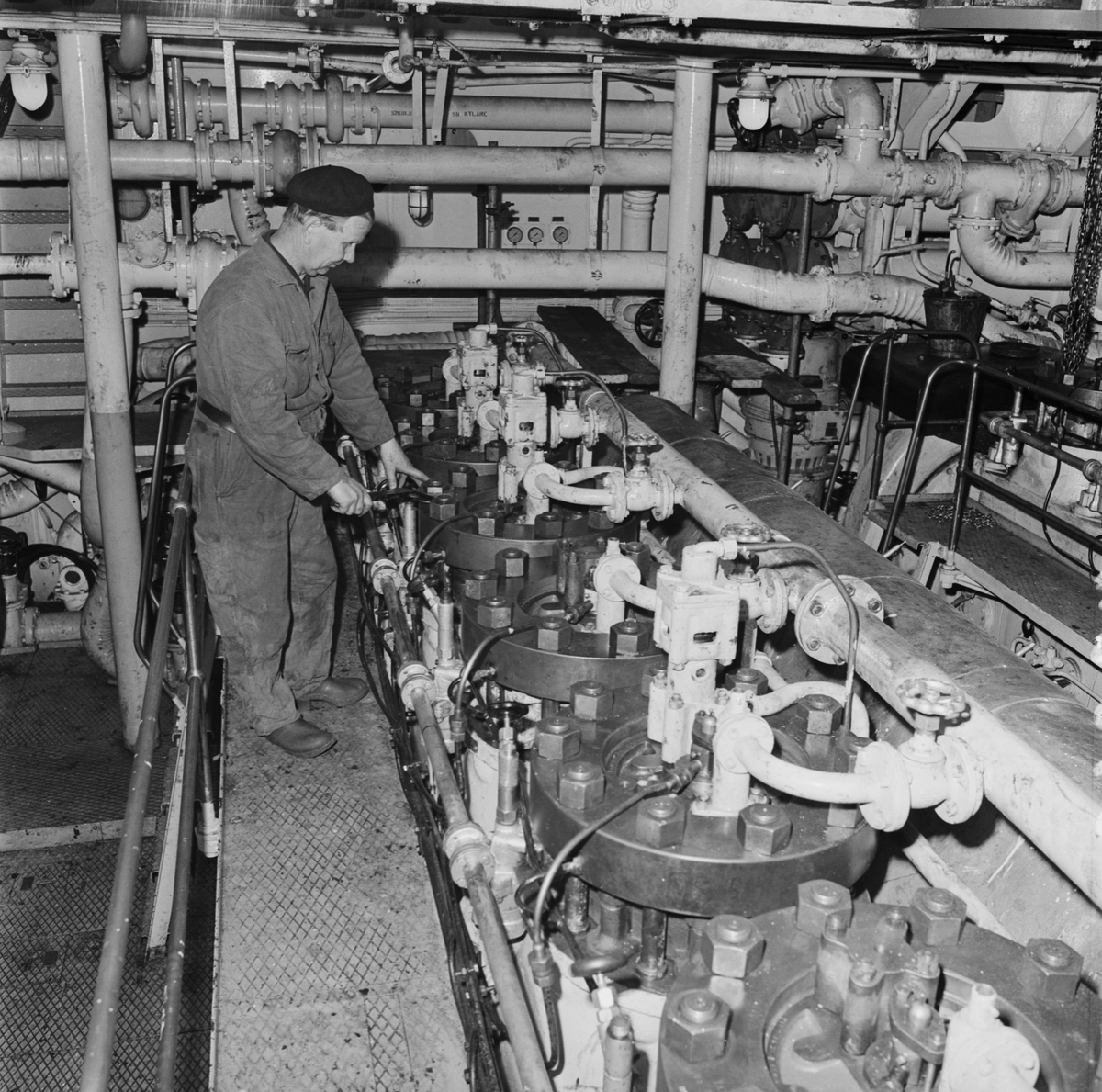 Personal i arbete på isbrytaren Thule. Maskinrum o propeller
