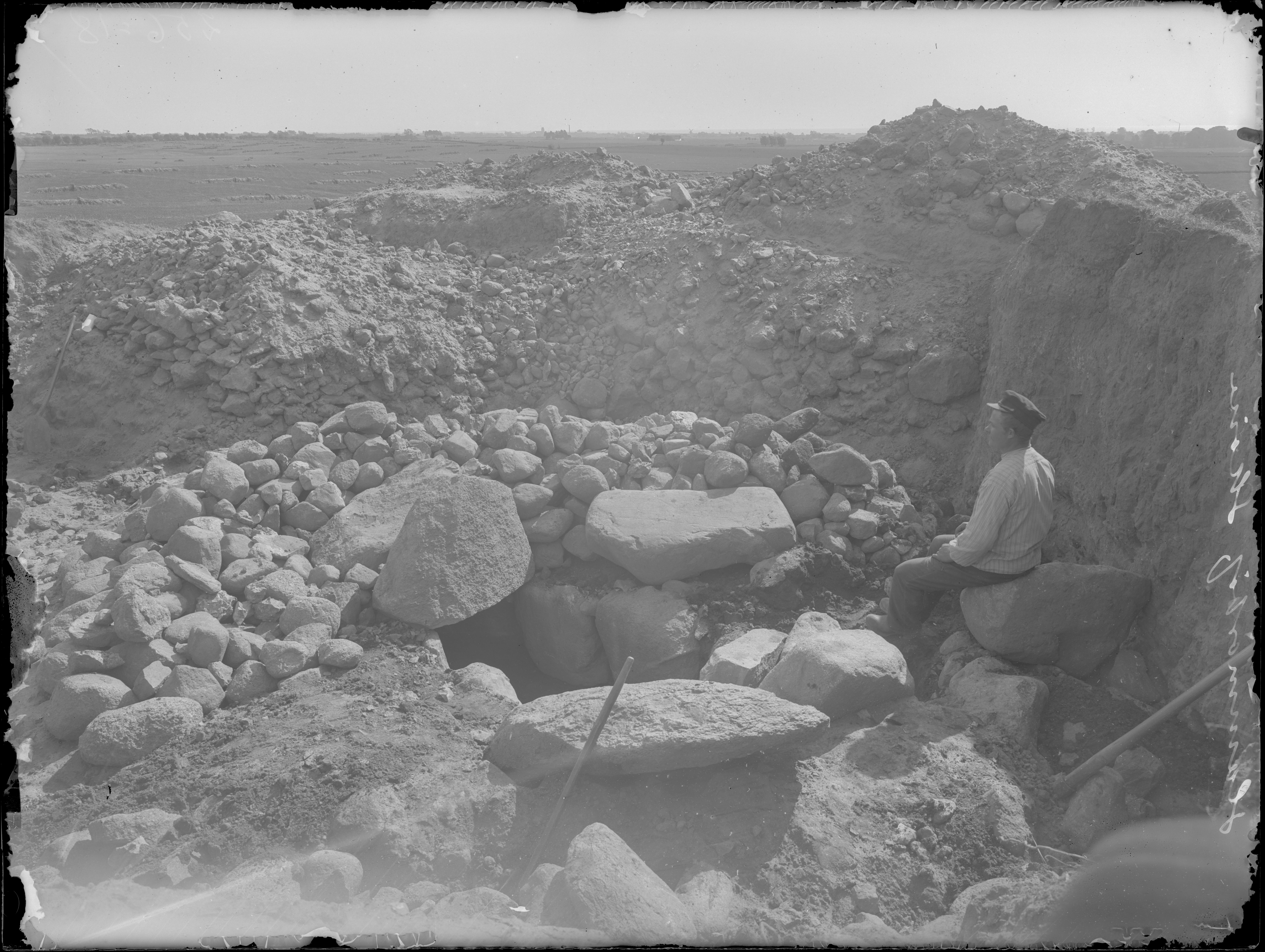 RAÄ-nummer Hammarlöv 4:1. Undersökning av hög med stenkammargrav från bronsåldern.