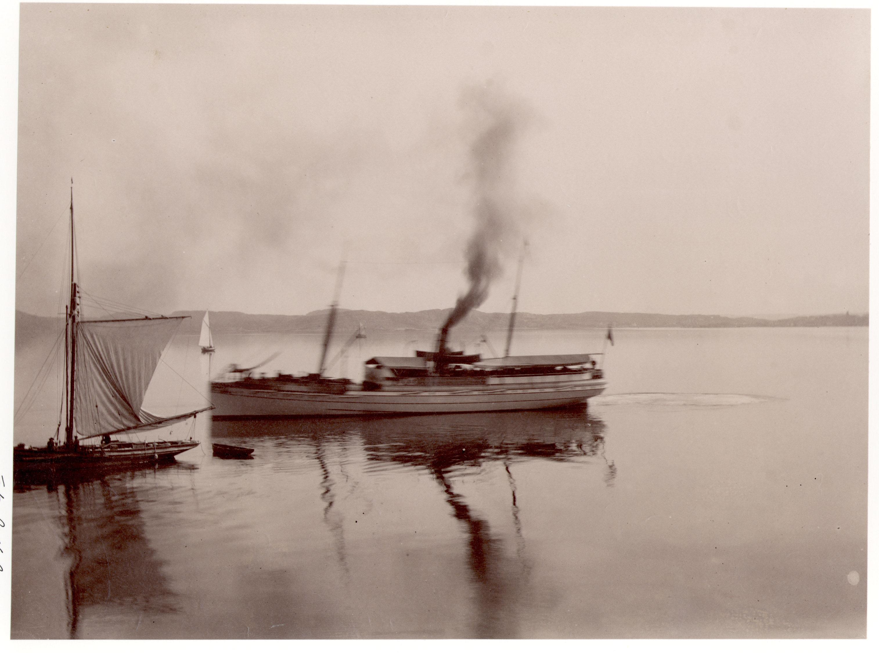 Båtar på Gullmarn (Gullmarsfjorden) utanför Lysekil. Skaftö på andra sidan vattnet.