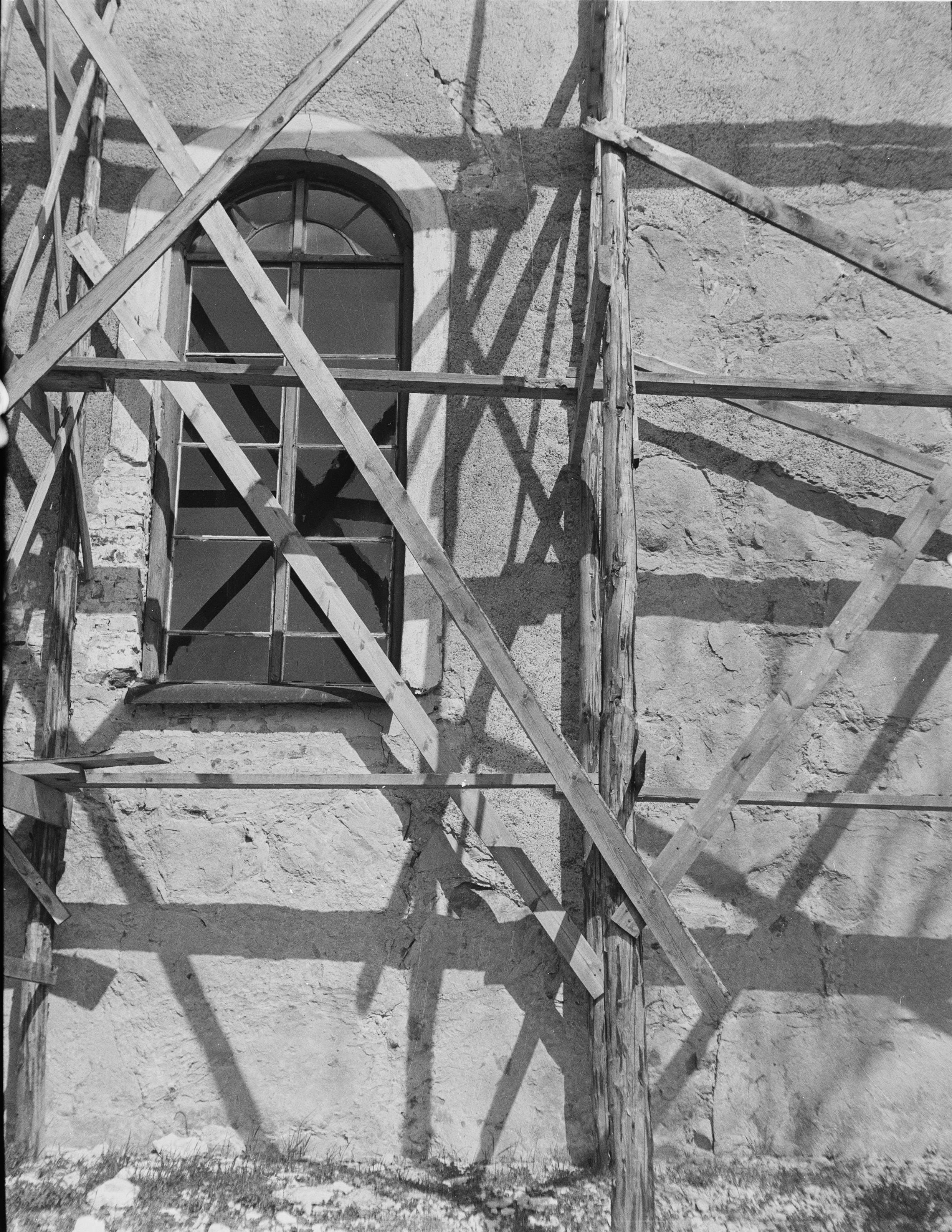Långsidan mot söder, mittenfönstret: spår av ursprungligt fönster ovanför.