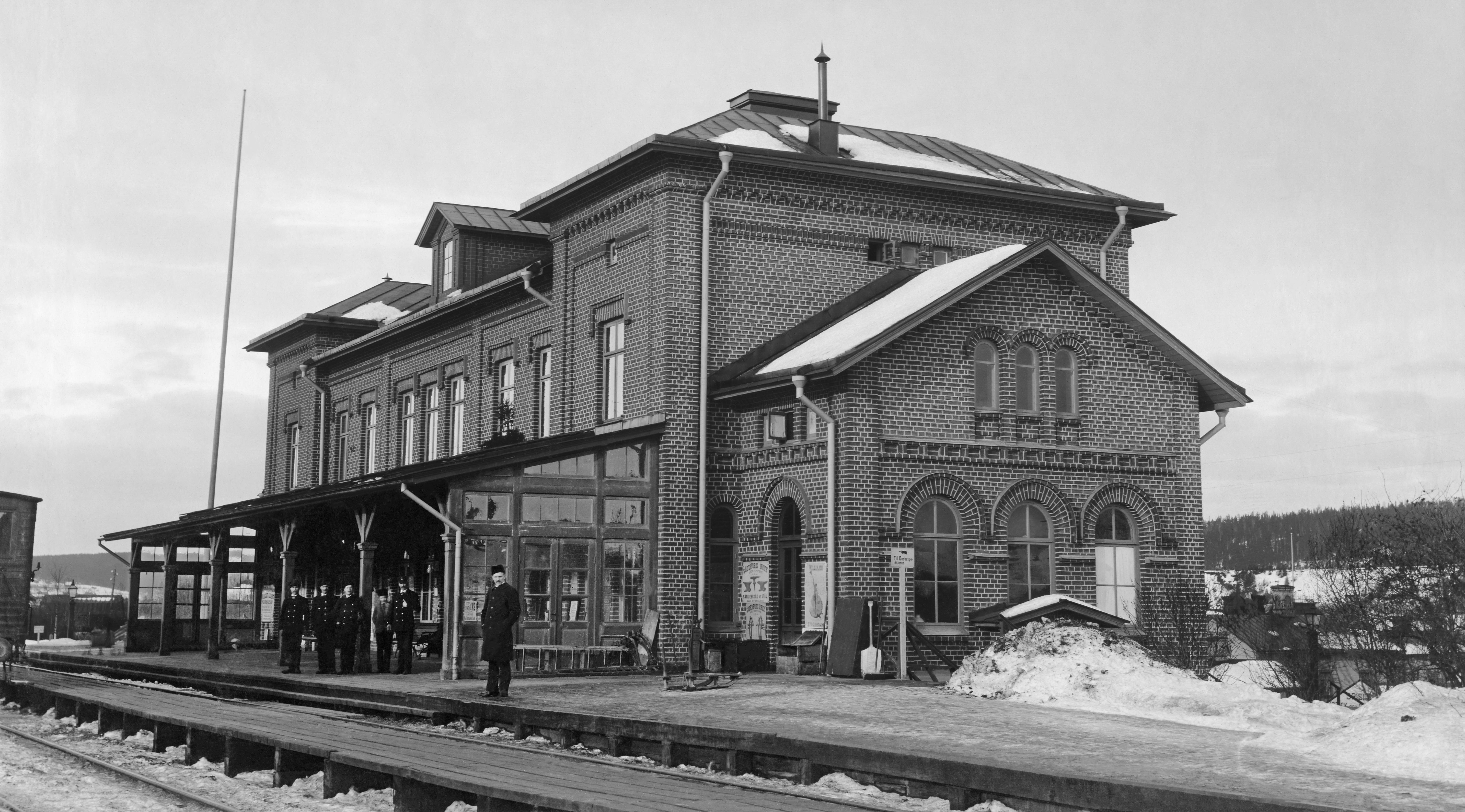 Järnvägsstationen. Foto för tidskriften Hemmet, årgång 1898.