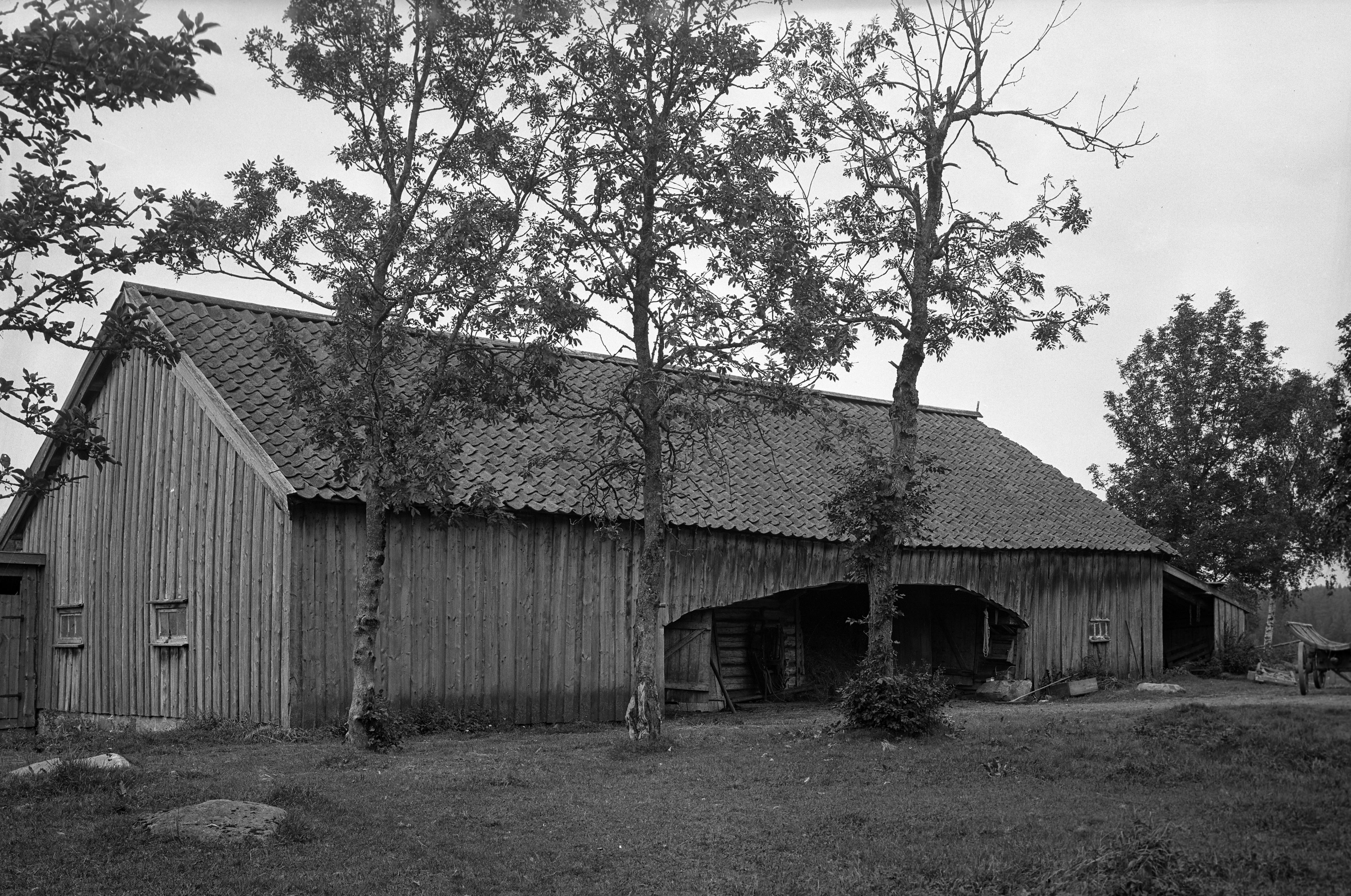 Fägårdsbyggnad av sydvästgötsk form. Observera den breda öppningen i mittpartiet, som egentligen innebär en sidoutvidgning, sk skonk. Tillhör relativt sen tid.