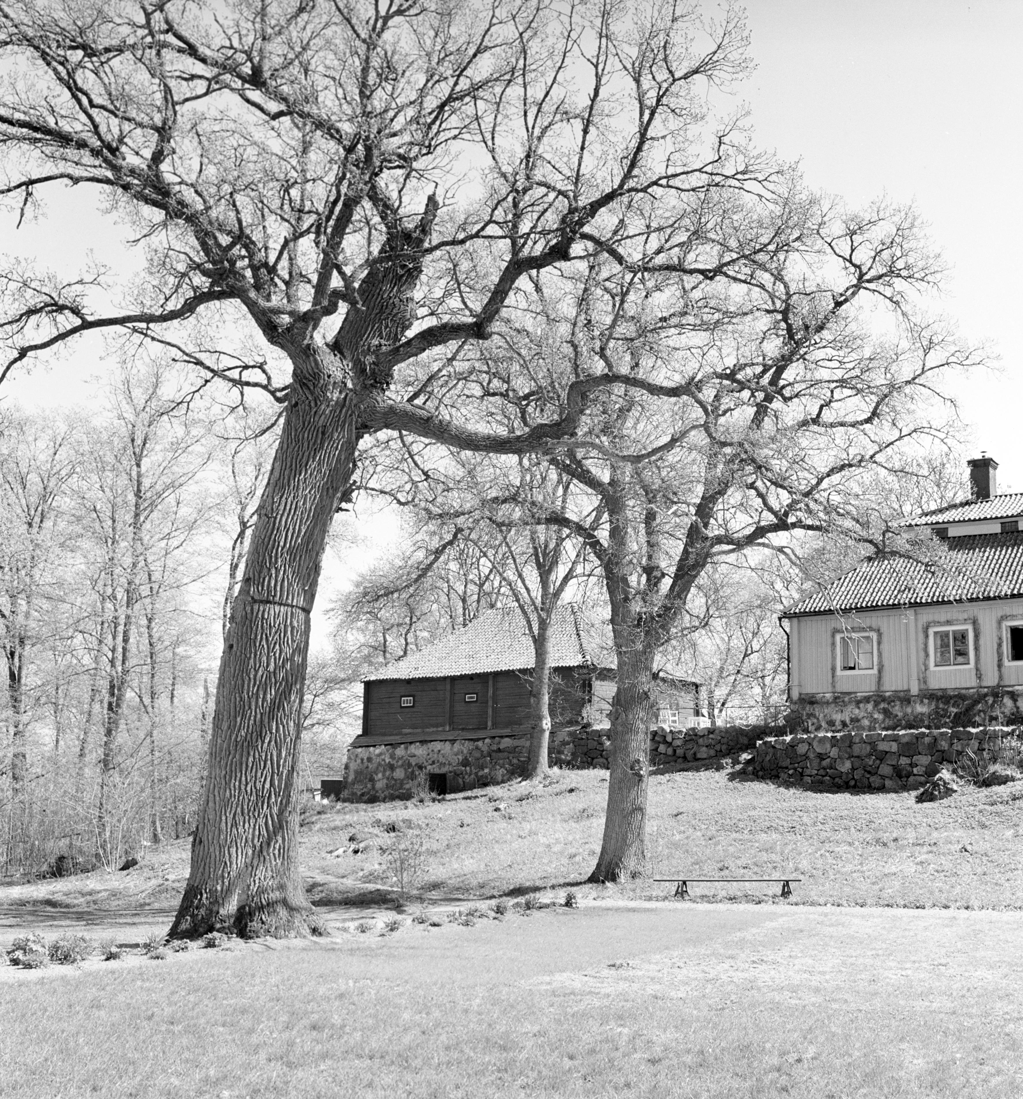Baksidan av trädgården, gården till höger. Bilden tagen på 1940-talet.