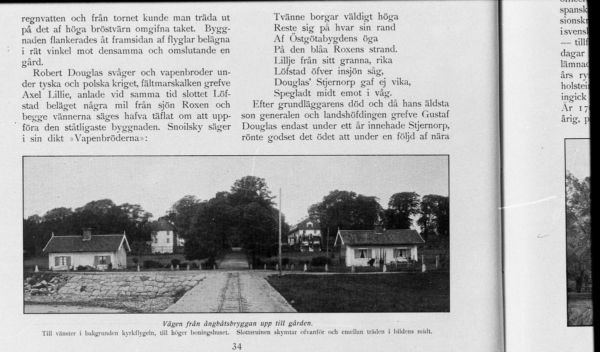 Reprofotografi av bebyggelse kring Stjärnorps slottsruin.