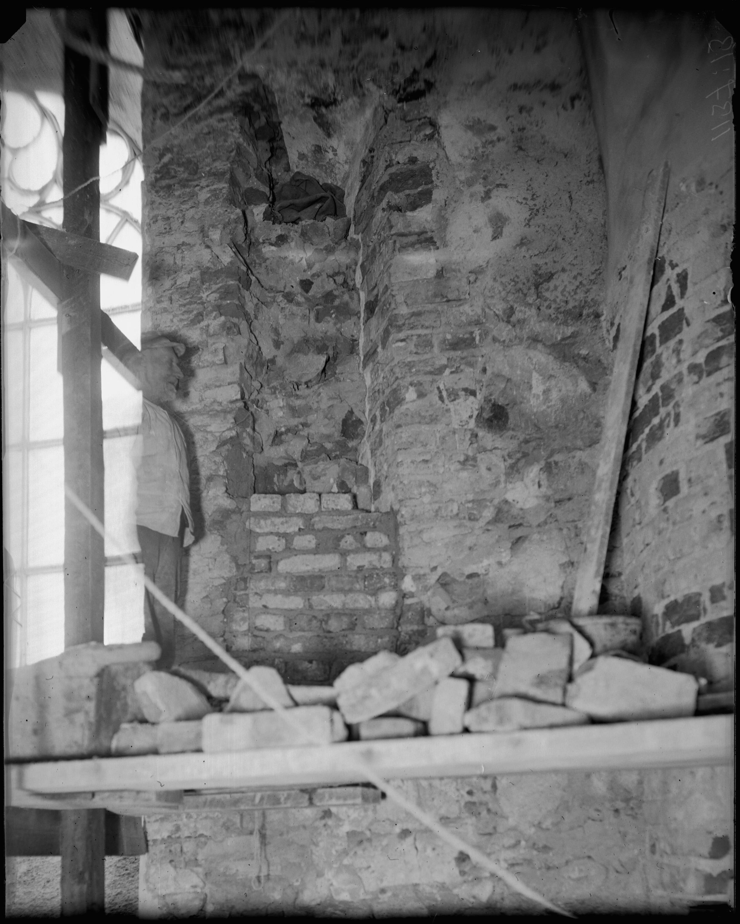 Rester av ursprungliga fönster i norra tvärskeppsgaveln.