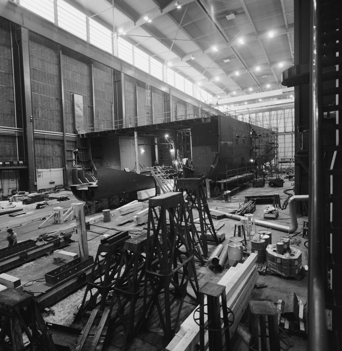 Ro/ro fartyget på bädden skrovhallen.