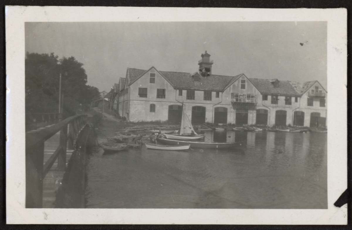 Bilden föreställer vyn från Laboratorieholmen till Slup- och barkasskjulet.