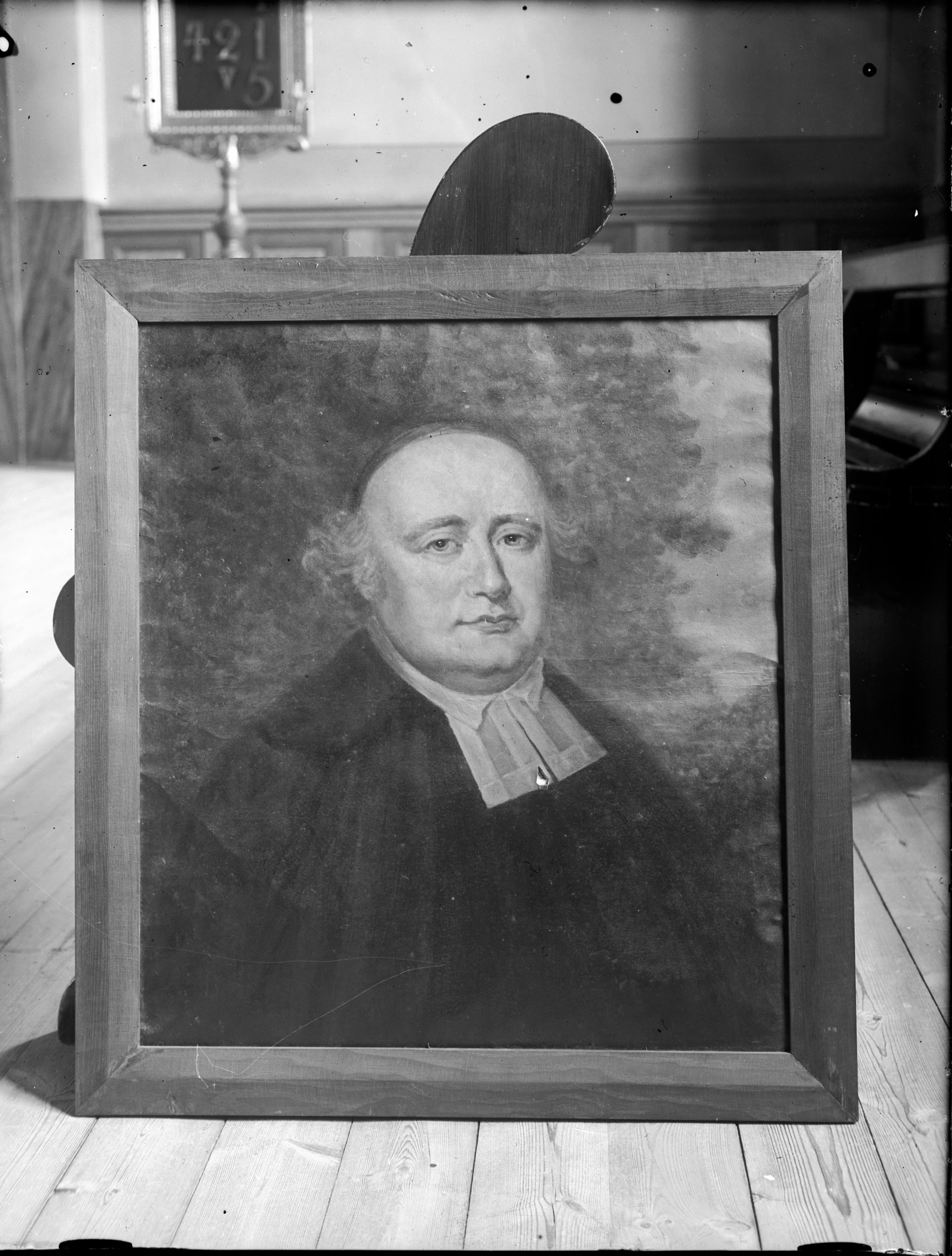 Porträtt av kyrkoherdar i ovala ramar med bandrosett och inskriftfält. 1797.