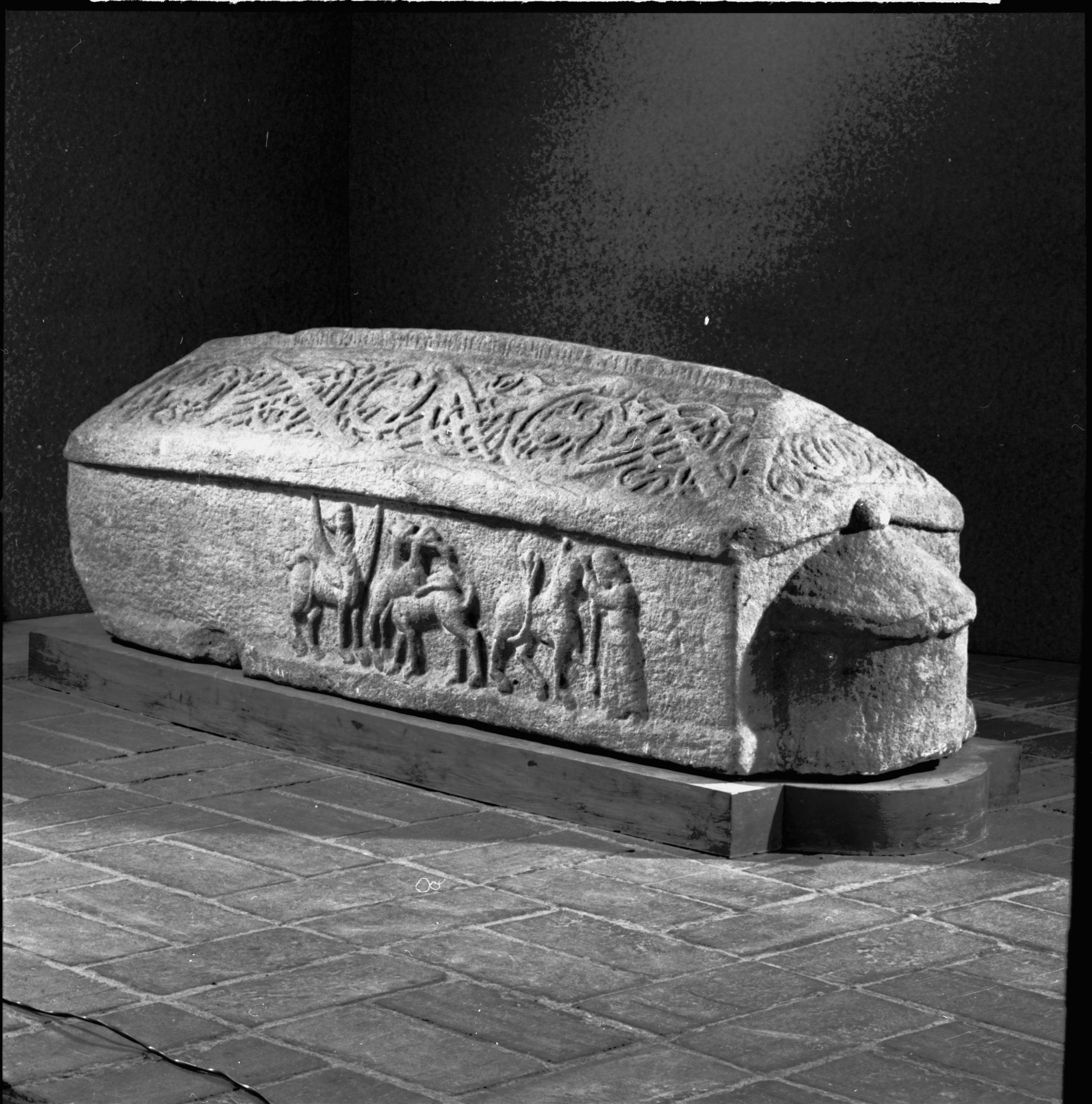 Botkyrkamonumentet. Gravvård av sandsten med grundform av en kyrka. 1100-talets första hälft.