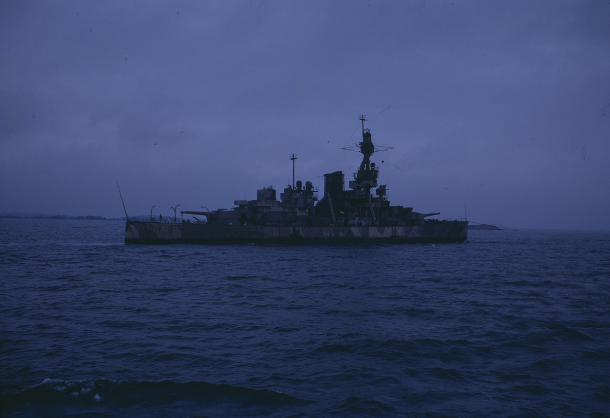 Bilden föreställer pansarkeppet Gustaf V under bogseringen.