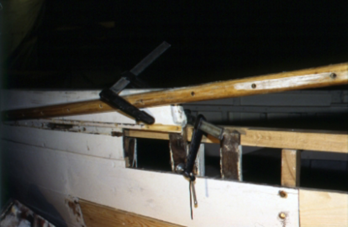 skador på bark, uppkomna i samband vid angöring utanför slup o barkasskjulet på stumholmen