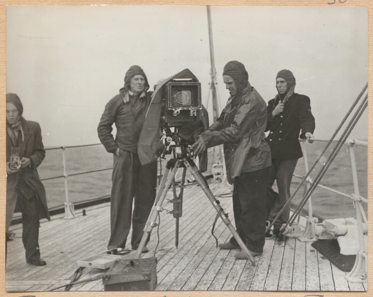 Bilden visar en filmcrew ombord på Fylgia.