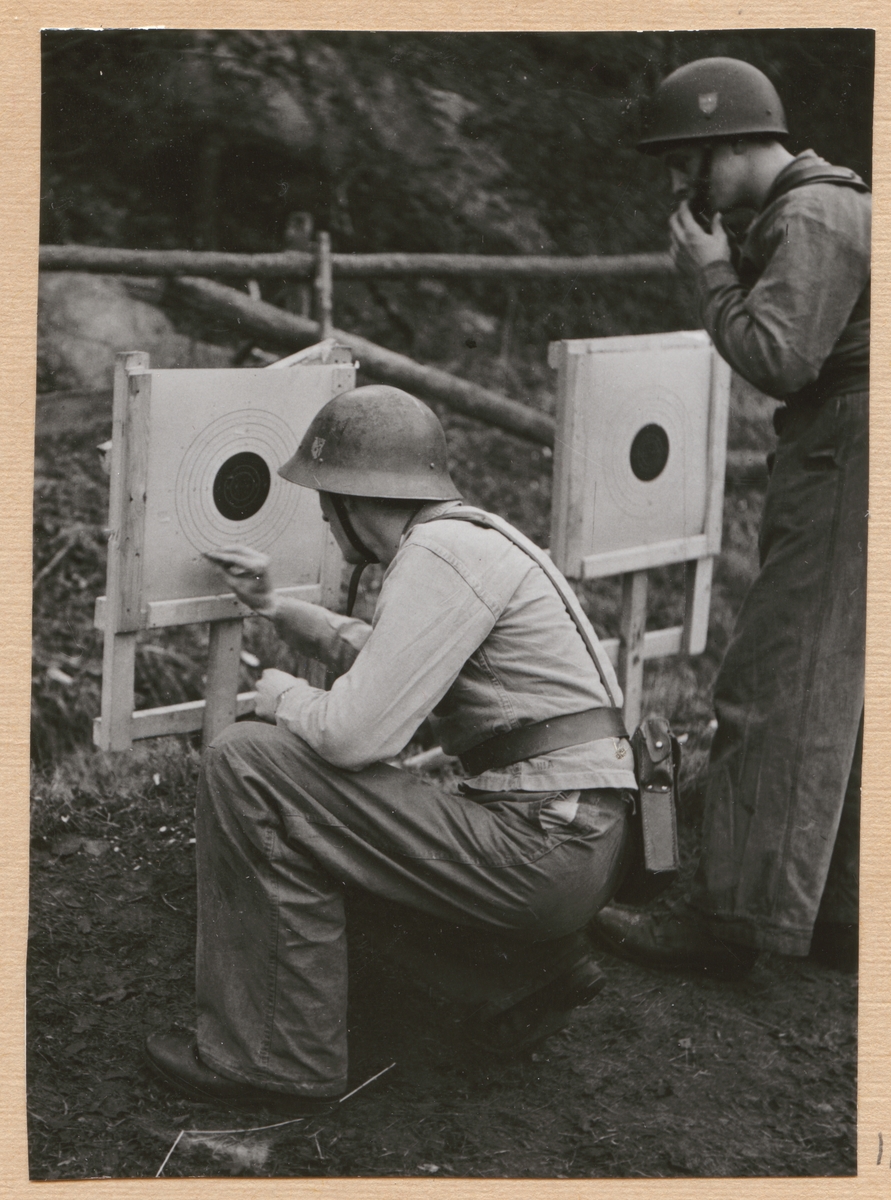 Bilden visar två soldater som läser av måltavlan efter skjutning.