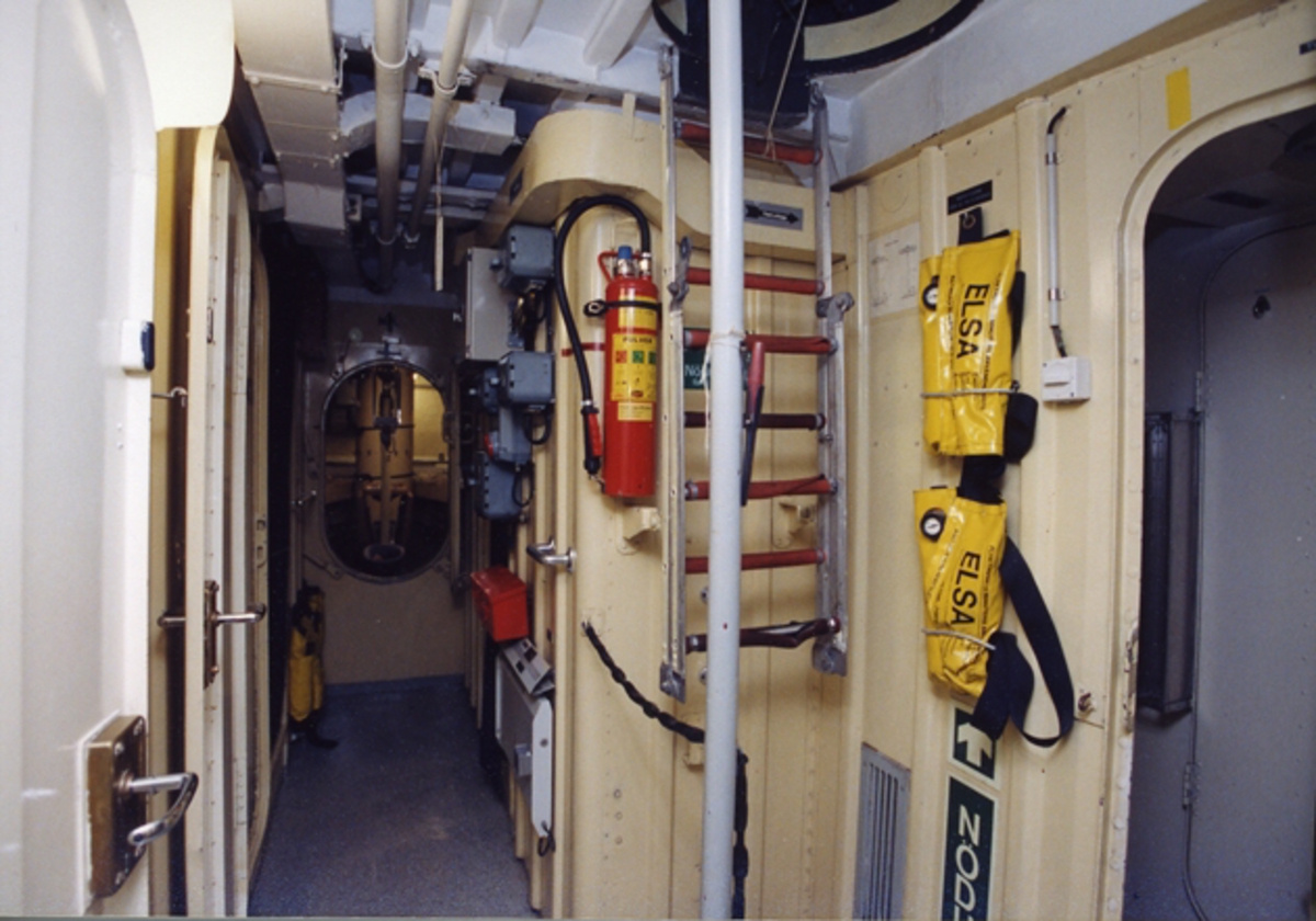 förlig gången ytterligare en nödutgång, på barbordsidan officershytter, rakt fram manskapsförläggning.