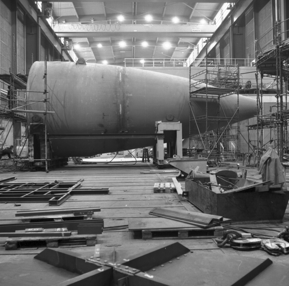 :: Ubåtssektion typ Västergötland i skrovhallen\\\\anm. neg är det enda i en serie om 5 som scannats, neg nr \\V 103093/gp