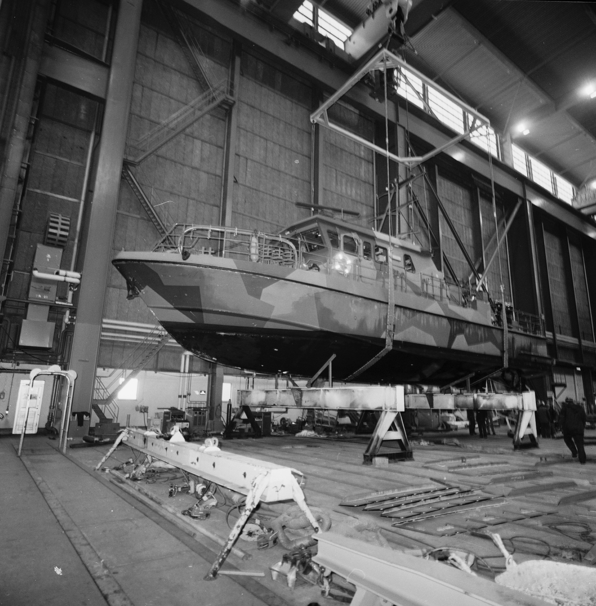 Titel: Lyft av patrullbåt in i skrovhallen
