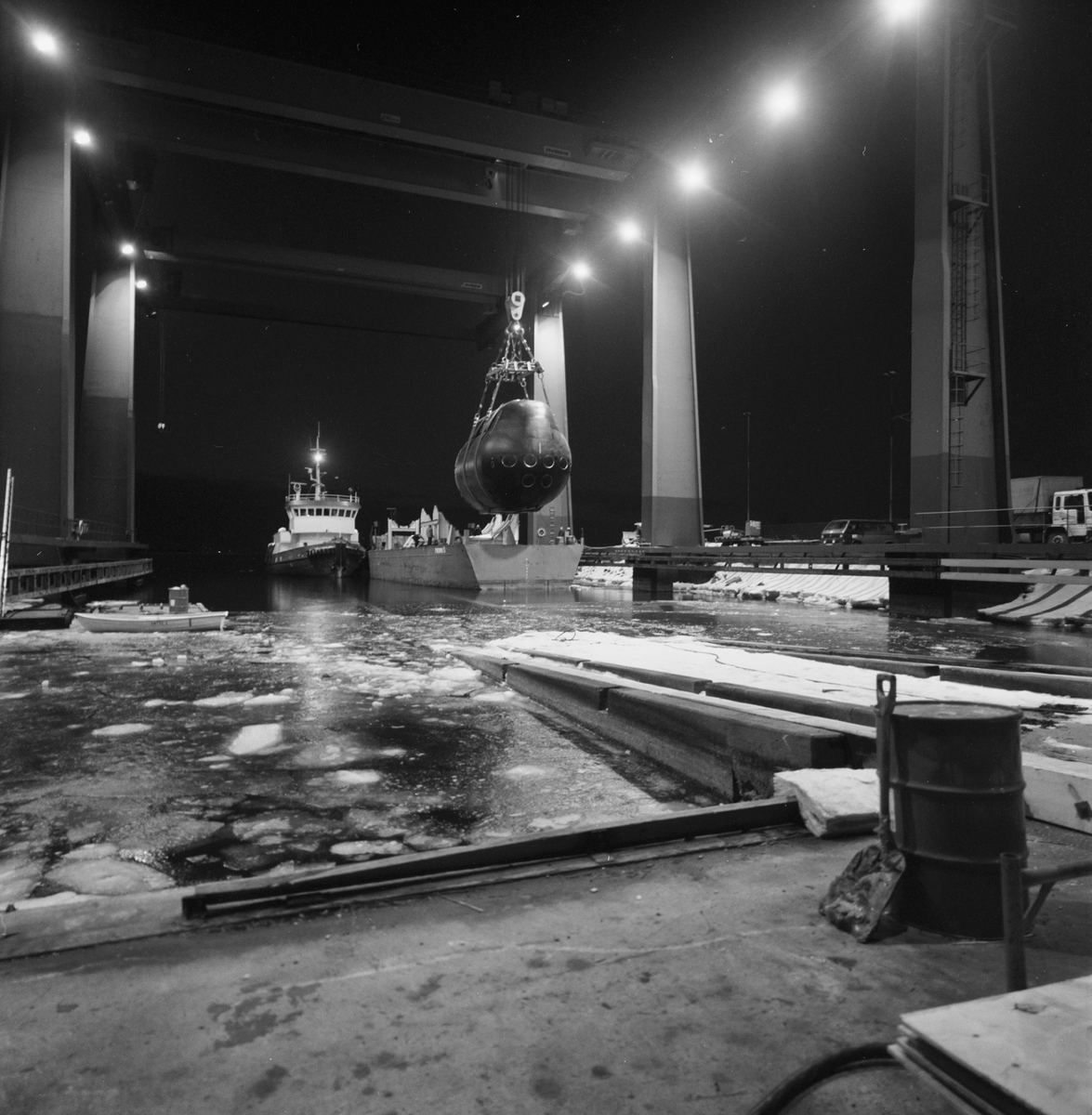 Titel: Lyft av förstäven till A19 ubåt för transport
