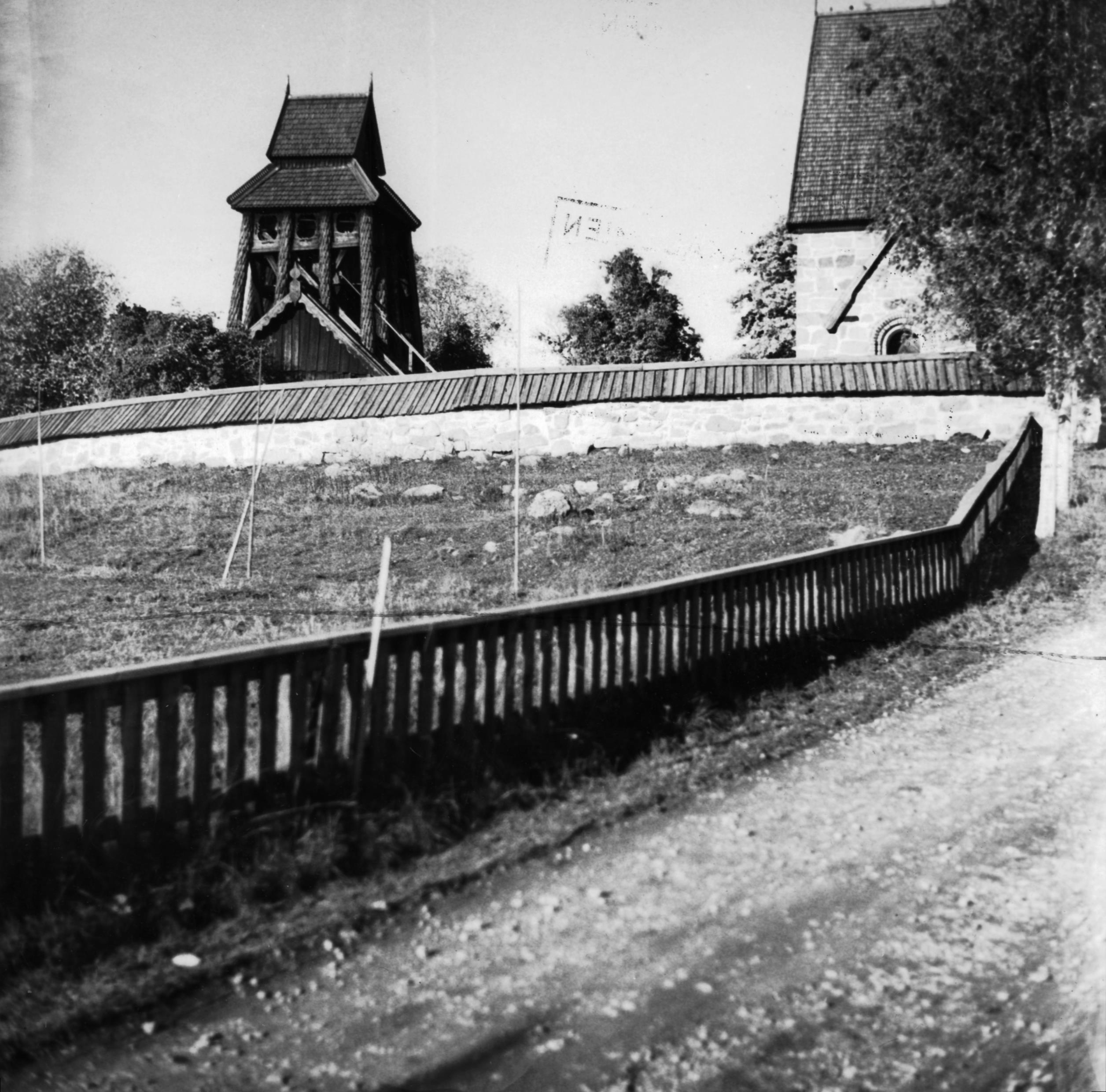 Vägbegränsning runt kyrkan.