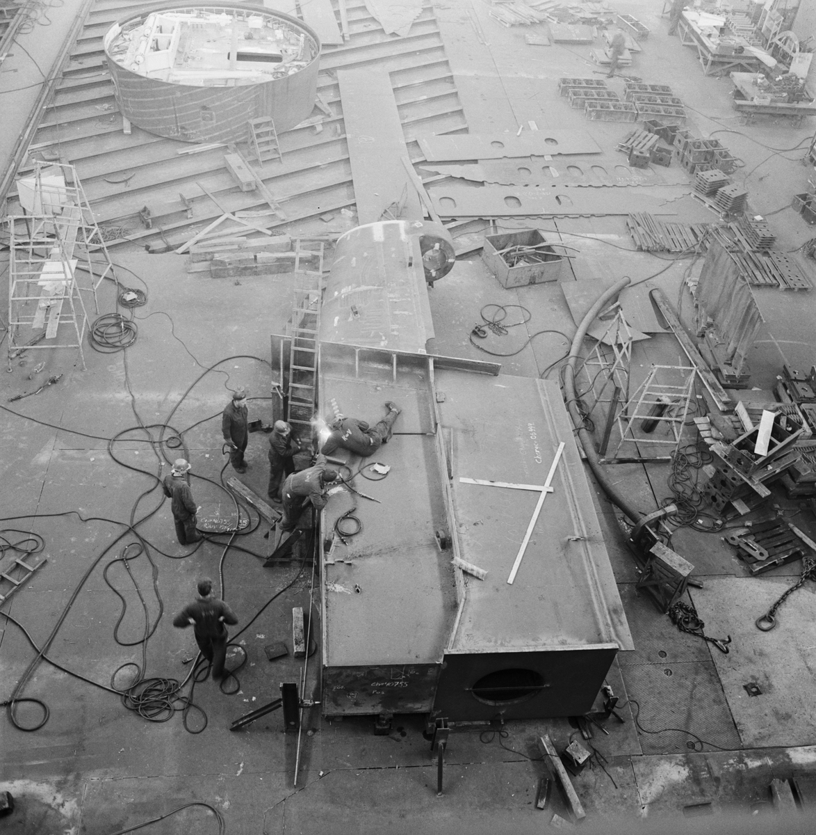 Titel: Bottensektion och akterstäv i plåtverkstan