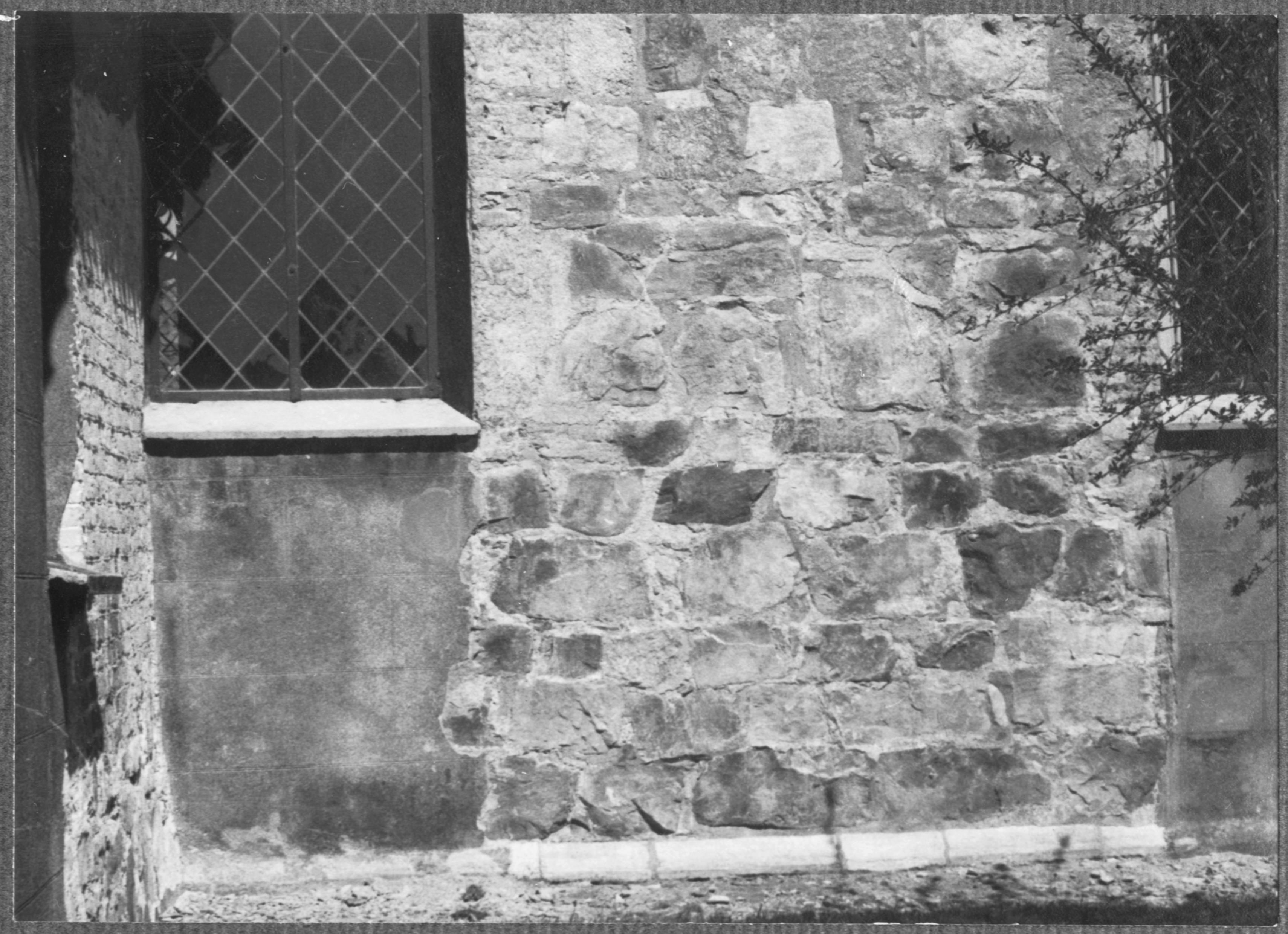 Kyrkans långhus från söder. Vid nedknackningen av puts.